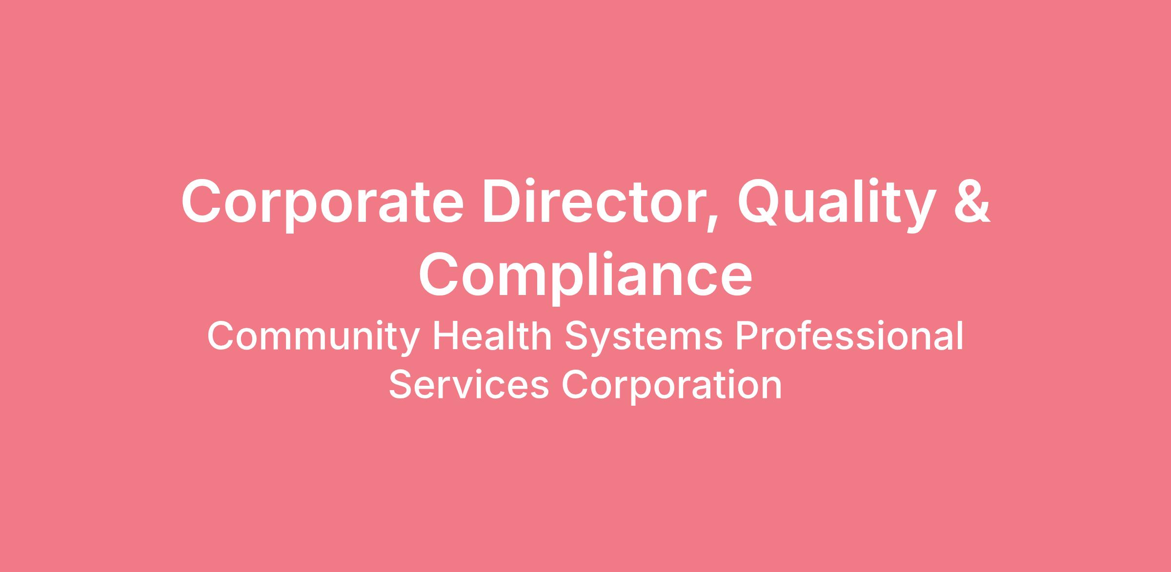 The Corporate Director, Quality & Compliance is responsible for overseeing quality assurance and regulatory compliance activities to ensure that organizational standards, industry guidelines, and regulatory requirements are consistently met. This role provides strategic direction and oversight to maintain and improve the quality of services or processes, as well as ensuring adherence to applicable legal and regulatory guidelines. The Director collaborates with cross-functional teams to implement best practices, identify improvement areas, and promote a culture of quality and compliance across the organization.