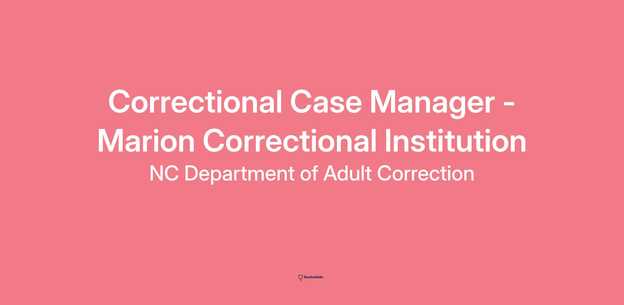 Join to apply for the Correctional Case Manager - Marion Correctional Institution role at NC Department of Adult Correction .