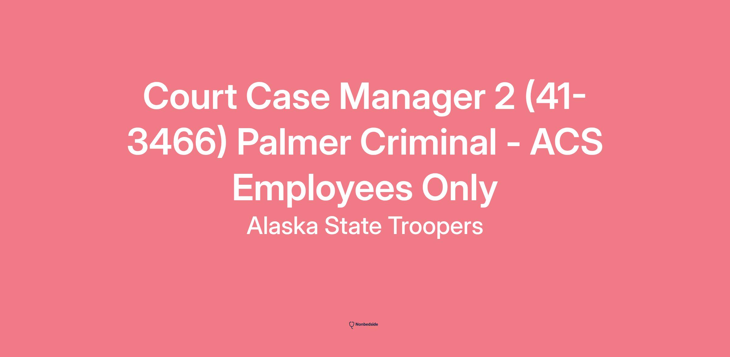 The Palmer Criminal Division of the Alaska Court System (ACS) is recruiting for a Court Case Manager 2 (salary range 12). This position requires a high level of attention to detail and the ability to work in a fast-paced environment.