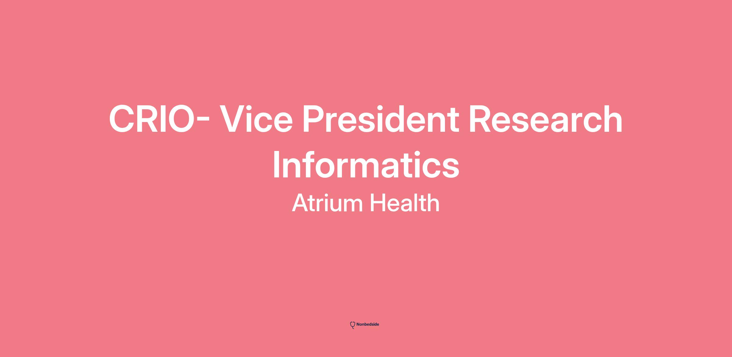 Join to apply for the CRIO- Vice President Research Informatics role at Atrium Health