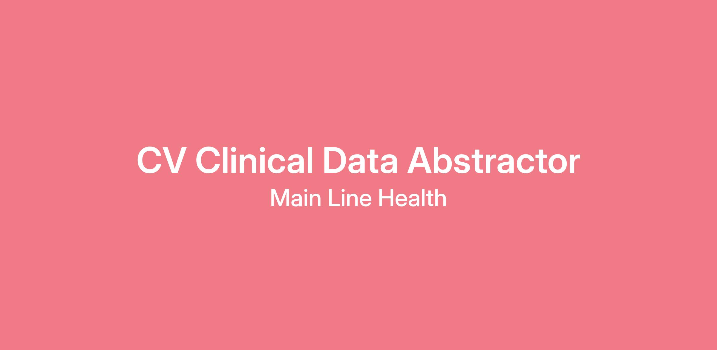 Could you be our next Cardiovascular Clinical Data Abstractor with Main Line Health? This position is 100%25 remote.