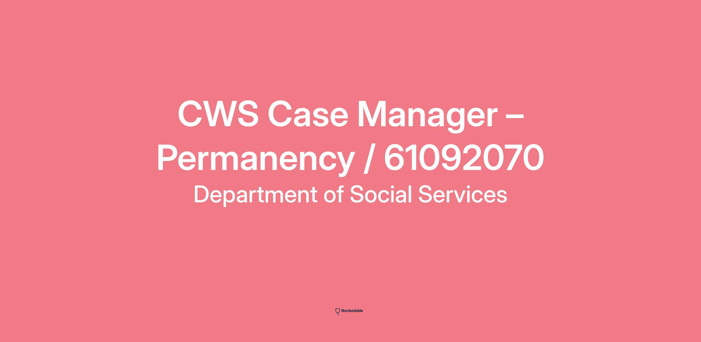 Responsibilities The CWS Case Manager performs case management and concurrent planning in the Child Welfare area of Adoptions in accordance with DSS Policy, Mission and GPS Practice Model. Makes contact with children and families to achieve the permanency goal of adoption. Utilizes critical thinking skills to monitor safety, risk, and well-being. Performs on-call duties as assigned