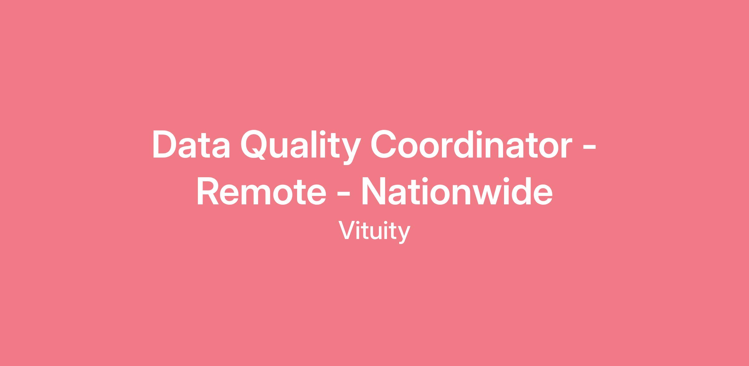 Remote, Nationwide – Seeking Data Quality Coordinator