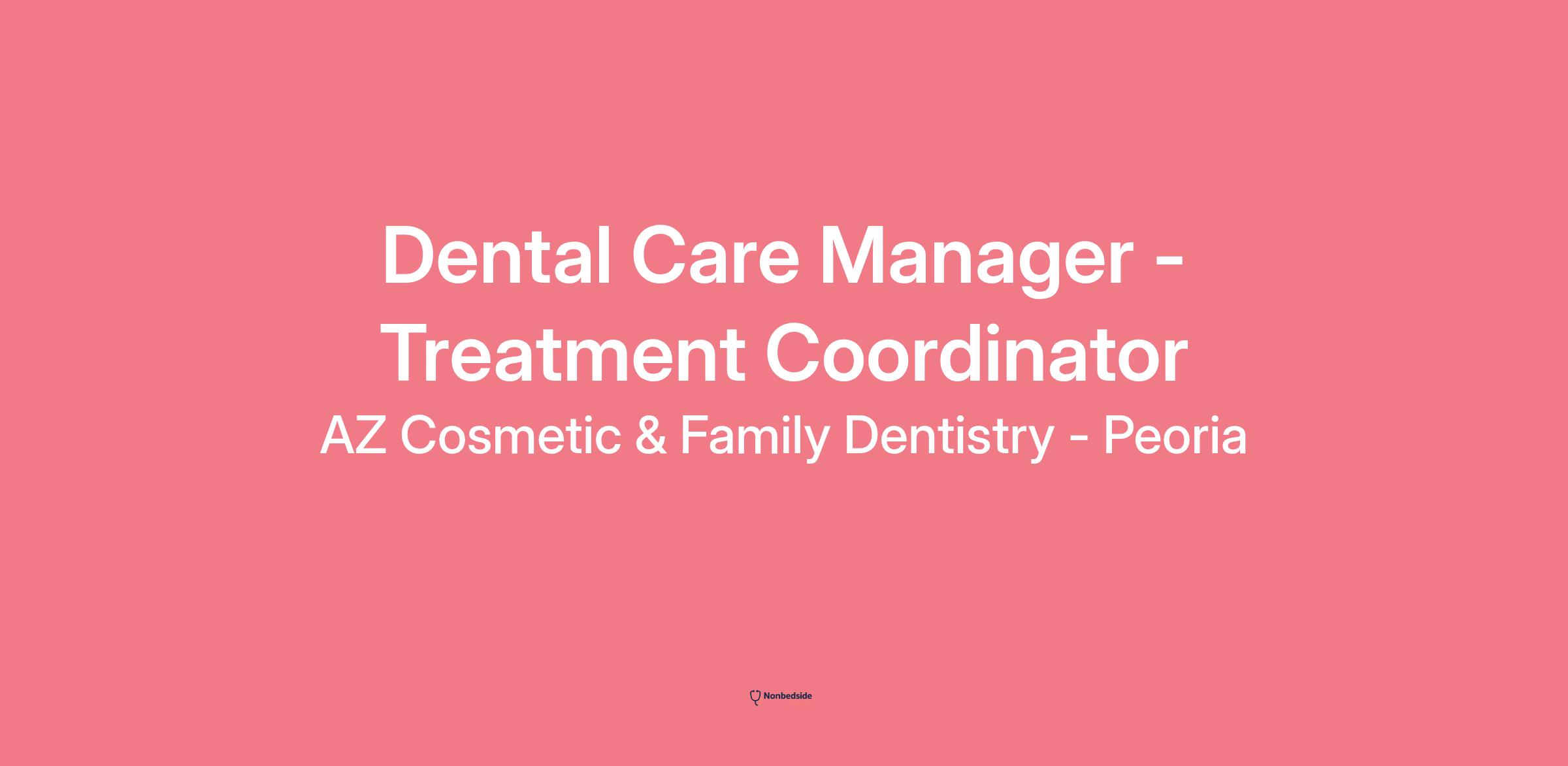 AZ Cosmetic & Family Dentistry in Peoria, AZ is calling all attentive, proactive individuals with administrative experience to apply to join our amazing office team as a full-time OR part-time Dental Care Manager - Treatment Coordinator!