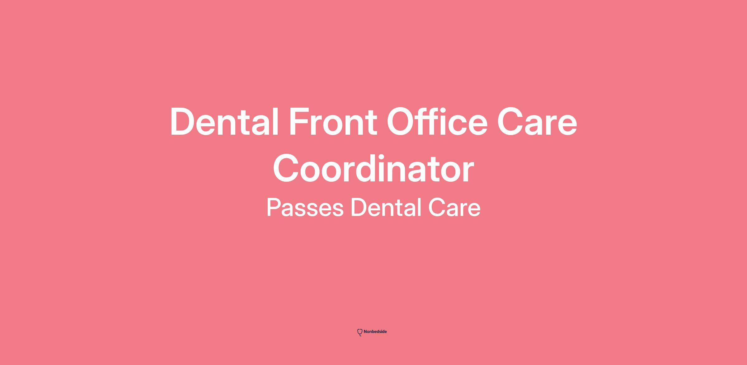 Dental Front Office Care CoordinatorDENTAL EXPERIENCE A MUST