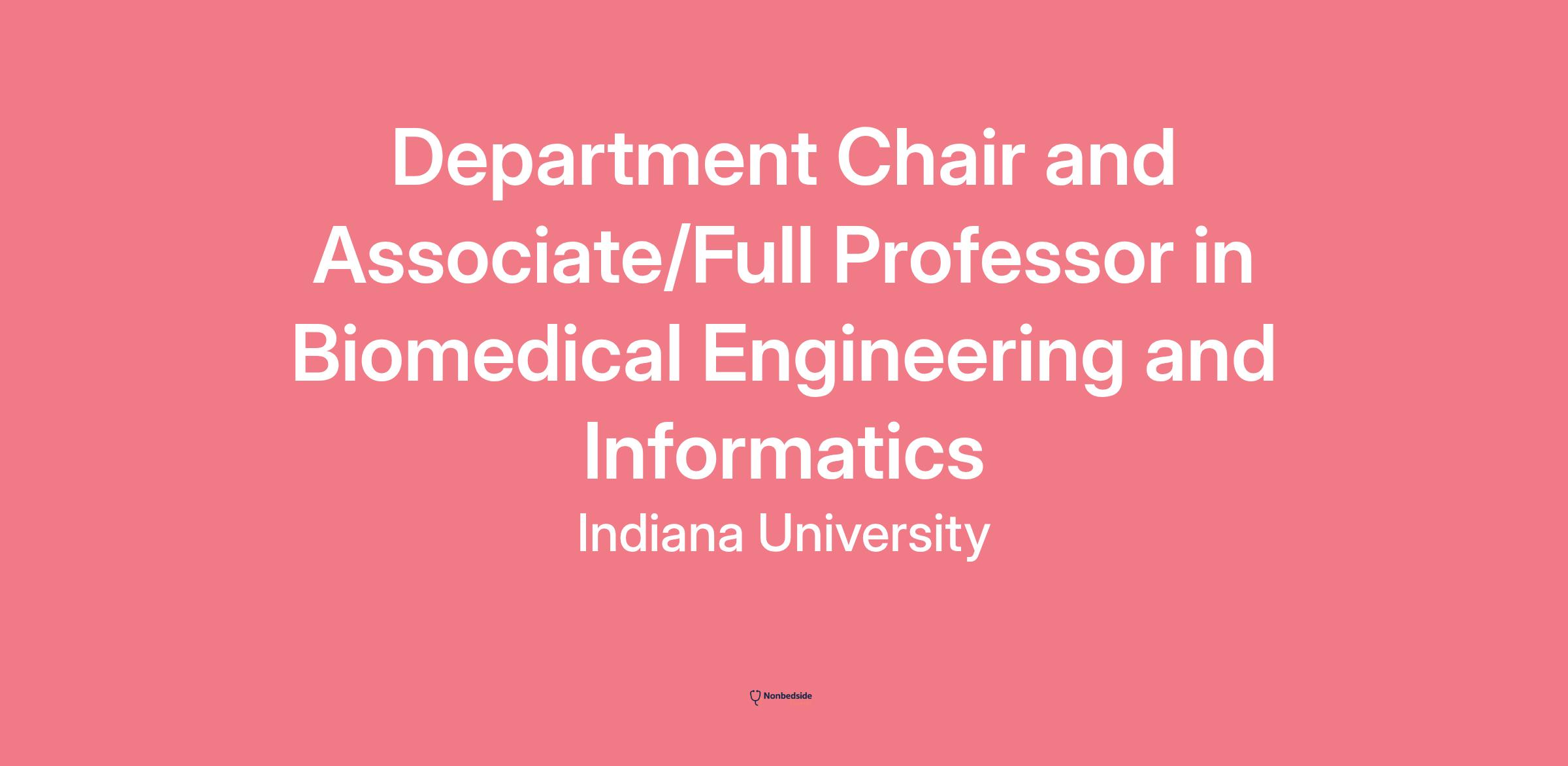 The Indiana University Luddy School of Informatics, Computing and Engineering at IU Indianapolis seeks exceptional candidates for a tenured faculty position to serve as chair in the Department of Biomechanical Engineering and Informatics (BMEI). The appointment will begin July 1, 2026 on the IU Indianapolis campus or potentially sooner. Exceptional faculty candidates are being sought to join our fast-growing department. We welcome applications from established researchers with collaborative research teams.