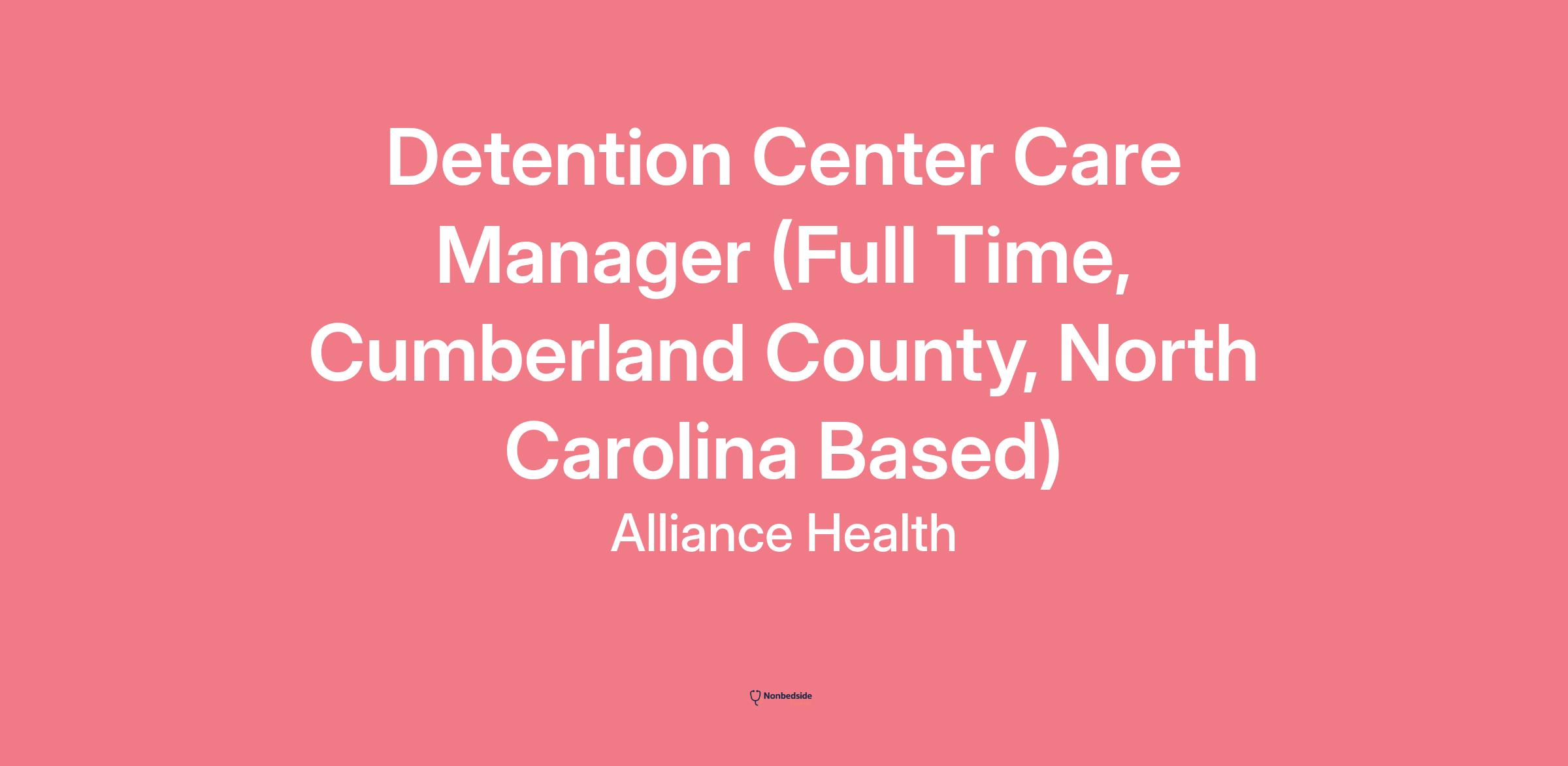 Detention Center Care Manager (Full Time, Cumberland County, North Carolina Based)