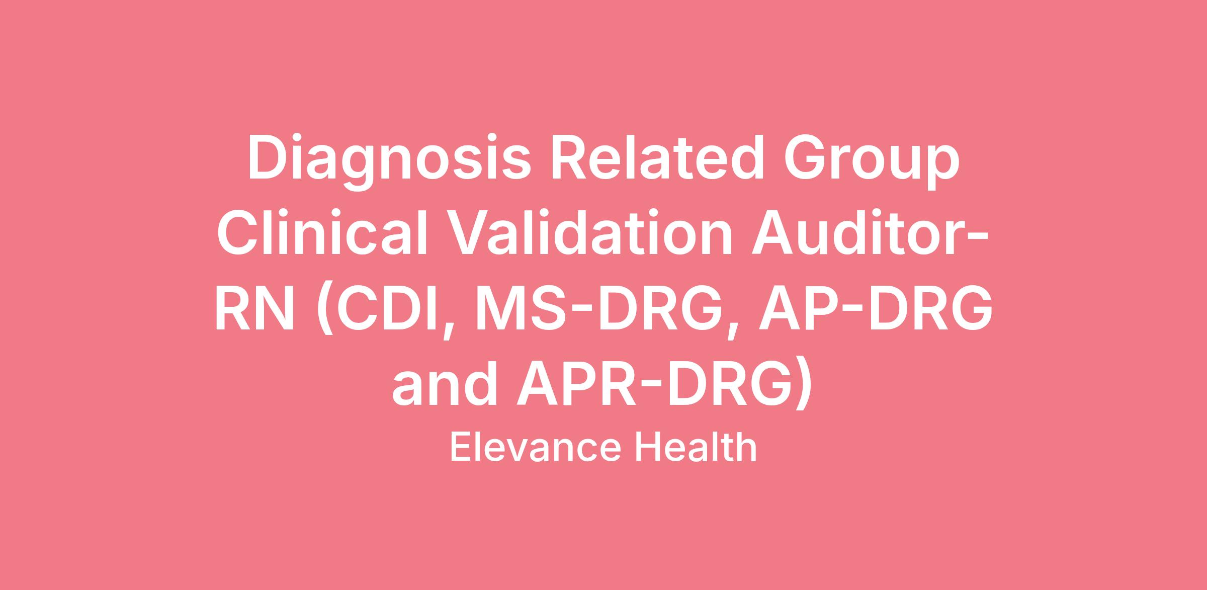 Diagnosis Related Group Clinical Validation Auditor-RN (CDI, MS-DRG, AP-DRG and APR-DRG)