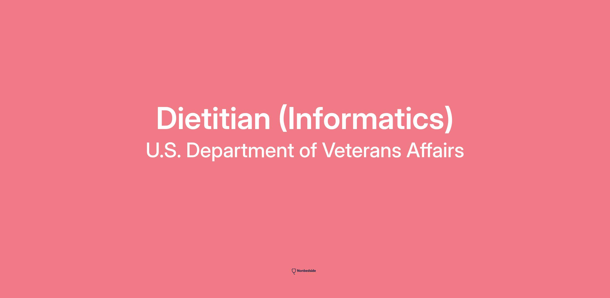 Join to apply for the Dietitian (Informatics) role at U.S. Department of Veterans Affairs