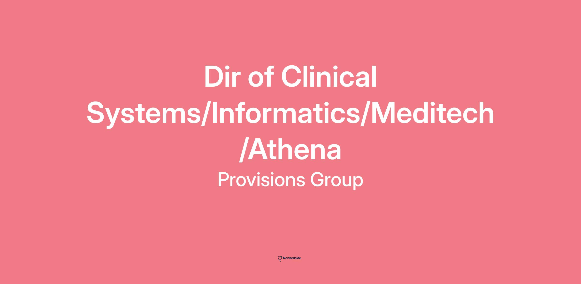 Dir of Clinical Systems/Informatics/Meditech/Athena