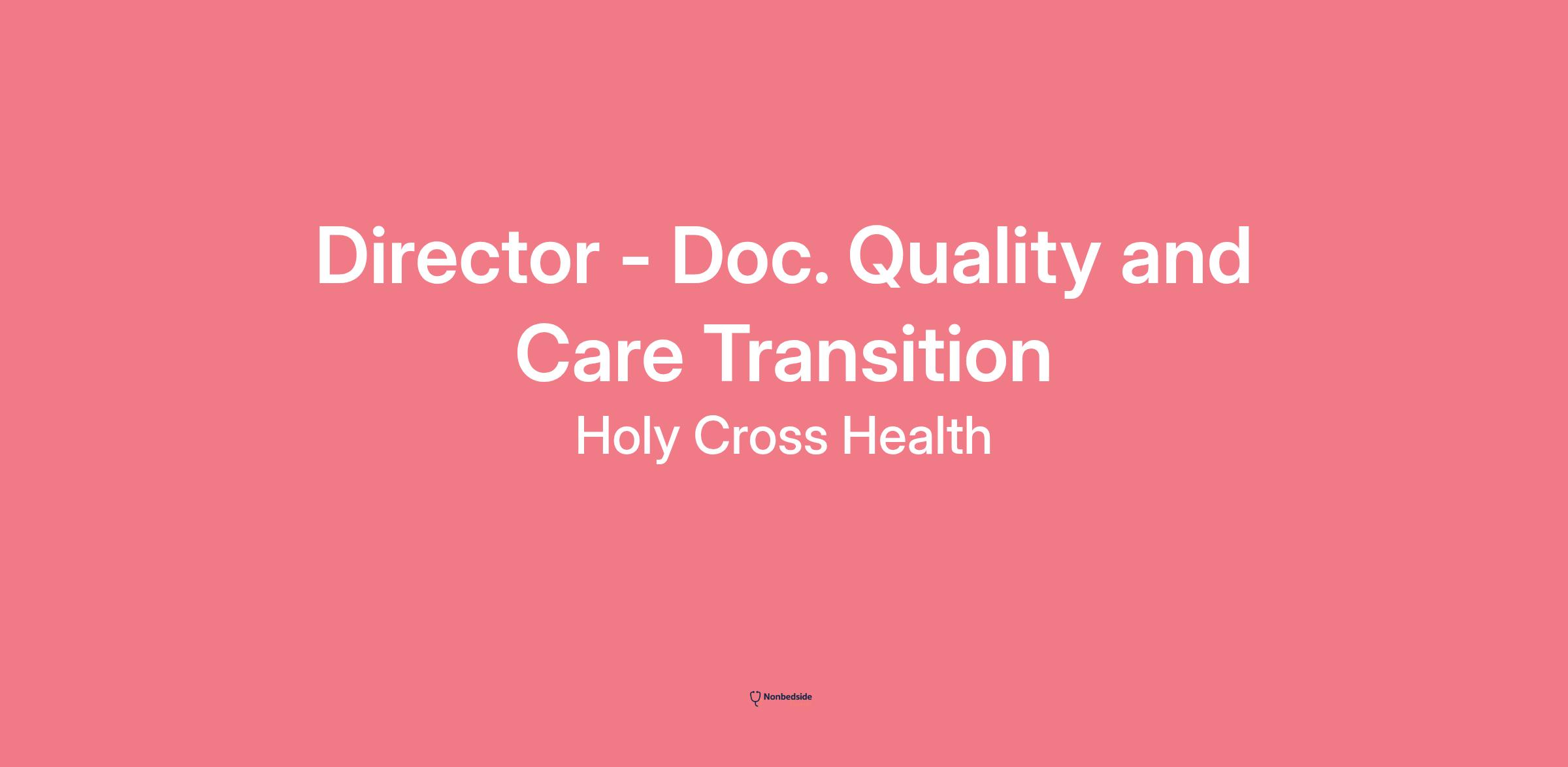 Overview Director - Doc. Quality and Care Transition at Holy Cross Health. Employment Type: Full time. Shift: Day Shift. Location: Holy Cross Health.
