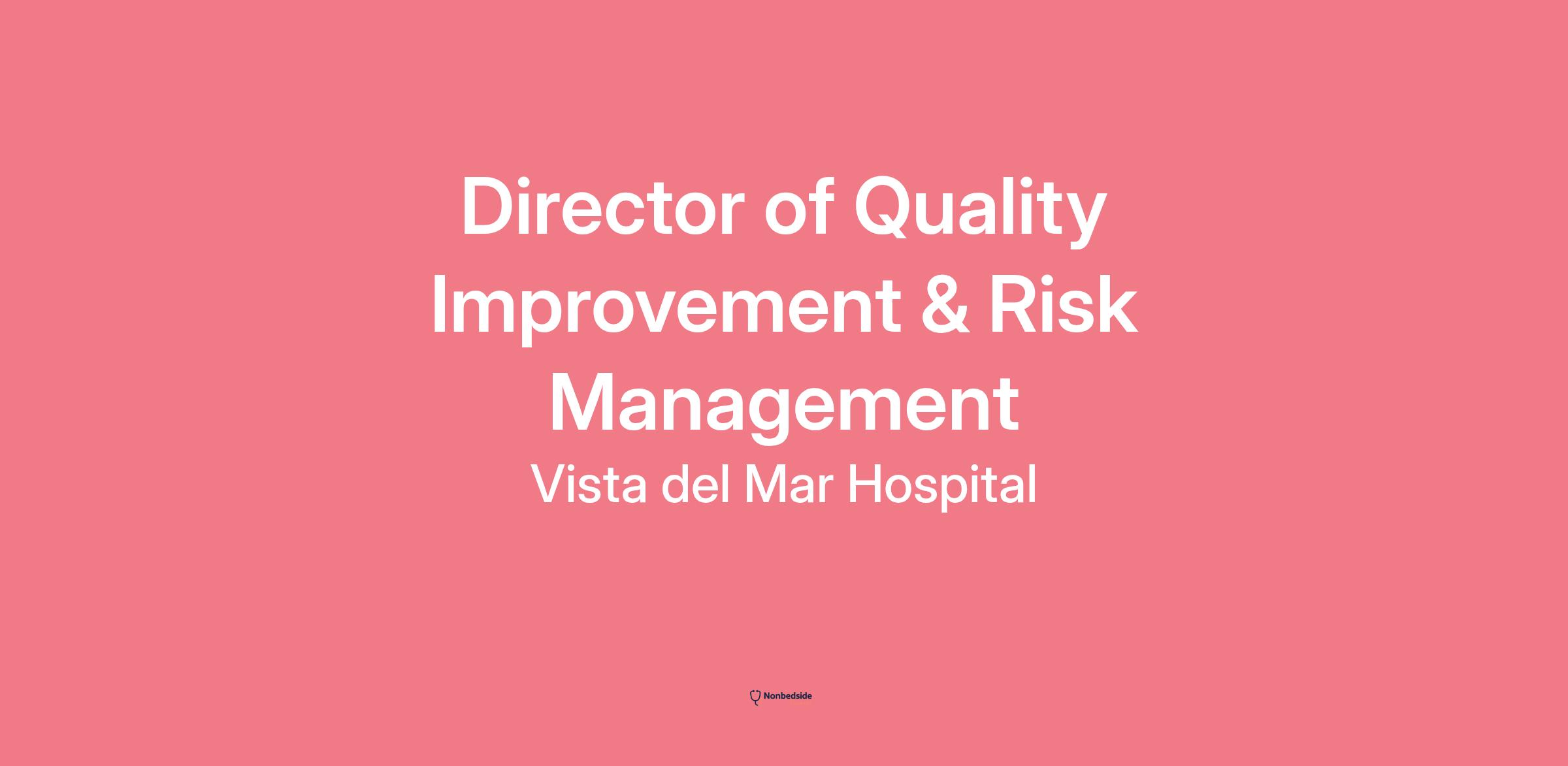 The Director of Quality and Risk will be responsible for leading quality initiatives across the hospital. The director will track, trend and action plan quality improvement initiatives to enhance patient care aspects and hospital processes. The director also leads the hospital in risk mitigation efforts to ensure patient safety. The director ensures compliance with all regulatory bodies including but not limited to TJC, CMS and CDPH.