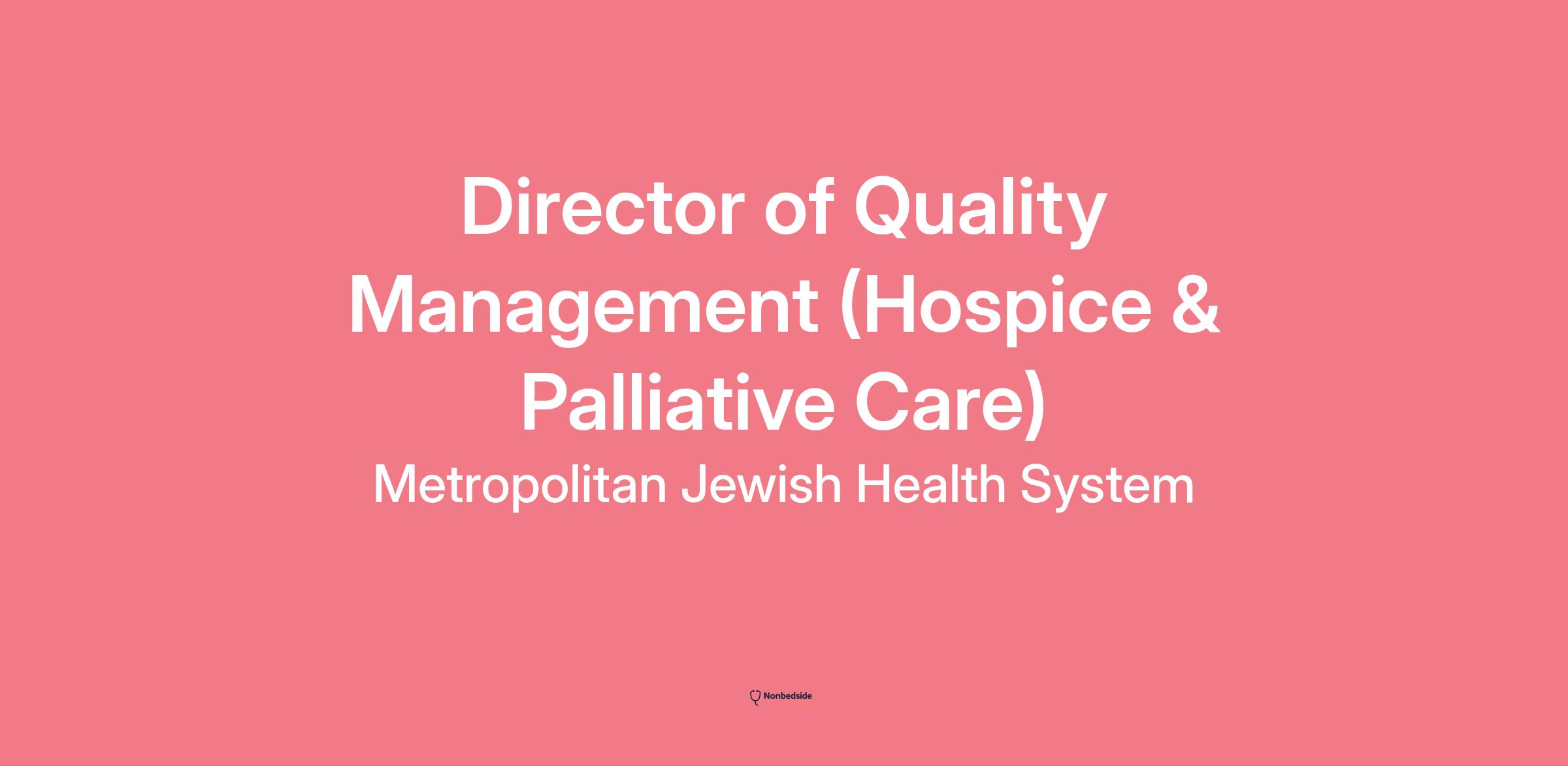 The Director of Quality Management oversees the development, implementation and maintenance of quality management program for Hospice and Palliative Care.