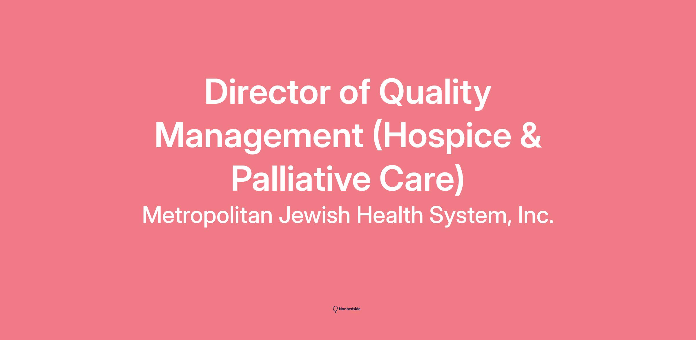 The Director of Quality Management oversees the development, implementation and maintenance of the quality management program for Hospice and Palliative Care.