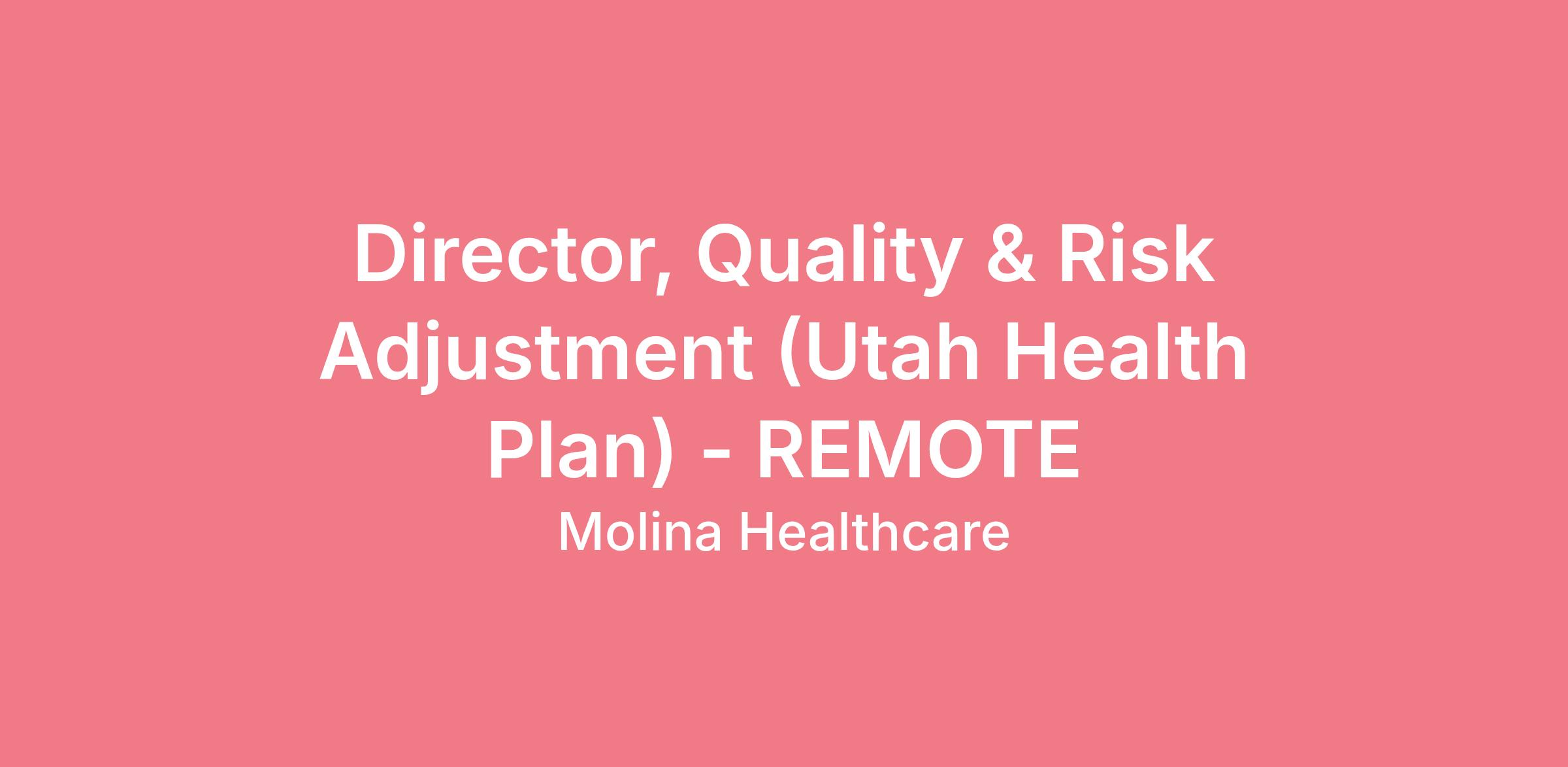 Director, Quality & Risk Adjustment (Utah Health Plan) - REMOTE