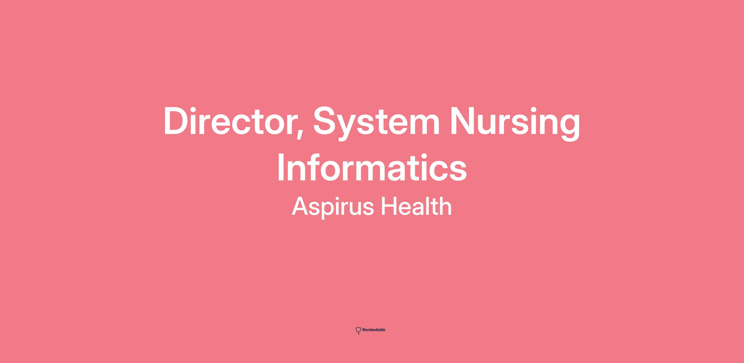 About the Role - Aspirus is seeking a Director of System Nursing Informatics to serve as a strategic liaison between nursing, medical staff, and technology, ensuring that health information systems support clinical care delivery. This role leads the assessment, implementation, and evaluation of IT solutions to enhance nursing practice and optimize clinical workflows. The Director oversees EHR improvements through a governance structure involving key stakeholders and aligns technology roadmaps with Aspirus Health's strategic goals, regulatory standards, and nursing care objectives. As a domain expert in healthcare technology and evidence-based nursing, this role drives change management, promotes professional development, and fosters a collaborative environment for staff.