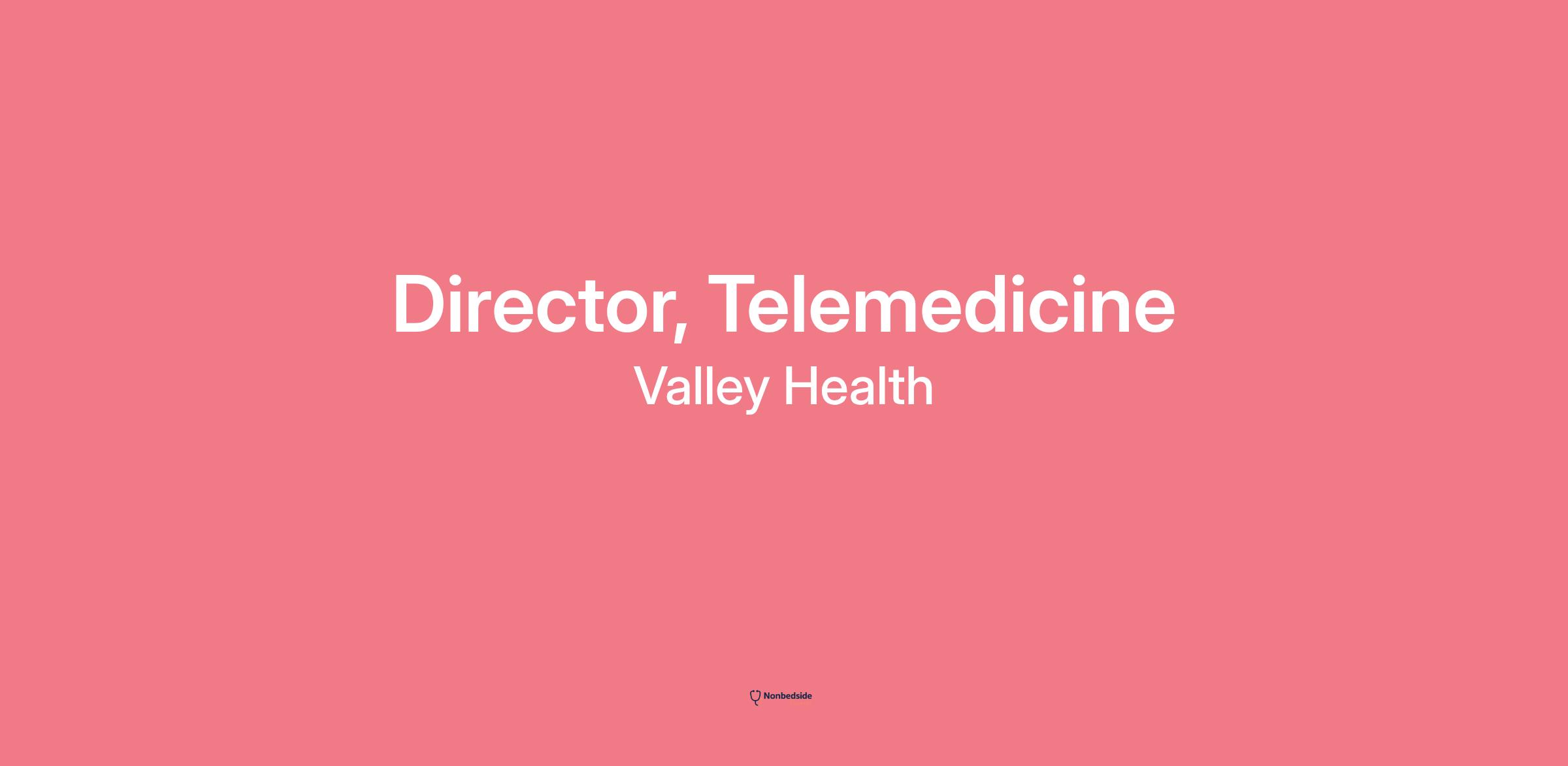 The Director of Telemedicine is a visible and engaged leader, working in collaboration with operational leaders, Marketing, Business Development, Finance, and Information Technology to develop and oversee the implementation of a system-level roadmap for delivering local and regional Telehealth services that are user-friendly and market-leading. The Director is responsible for working closely with other health system leaders, physicians, and operational and technical teams to direct state-of-the-art Telehealth solutions and programs for patients in all stages of care. The Director will have a deep understanding of clinical workflows in inpatient, outpatient, post-acute, and home-based environments, as well as technology trends and digital / Telehealth needs of patients, families, clinicians, healthcare organizations, and employers. The Director develops, accelerates and continually improves Telehealth services across the continuum of care while building buy-in and support from executive stakeholders and leading change management efforts to transform digital healthcare for patients and families. The Director serves to evangelize digital and Telehealth strategy to internal and external stakeholders, translating how Telehealth can improve clinical and cost outcomes and patient and clinician experience and builds mutually positive relationships with operational leaders, key physicians, payers, and community and state leaders to influence Telehealth legislation, reimbursement, and service expansion within the Valley Health service area and both nationally and internationally.