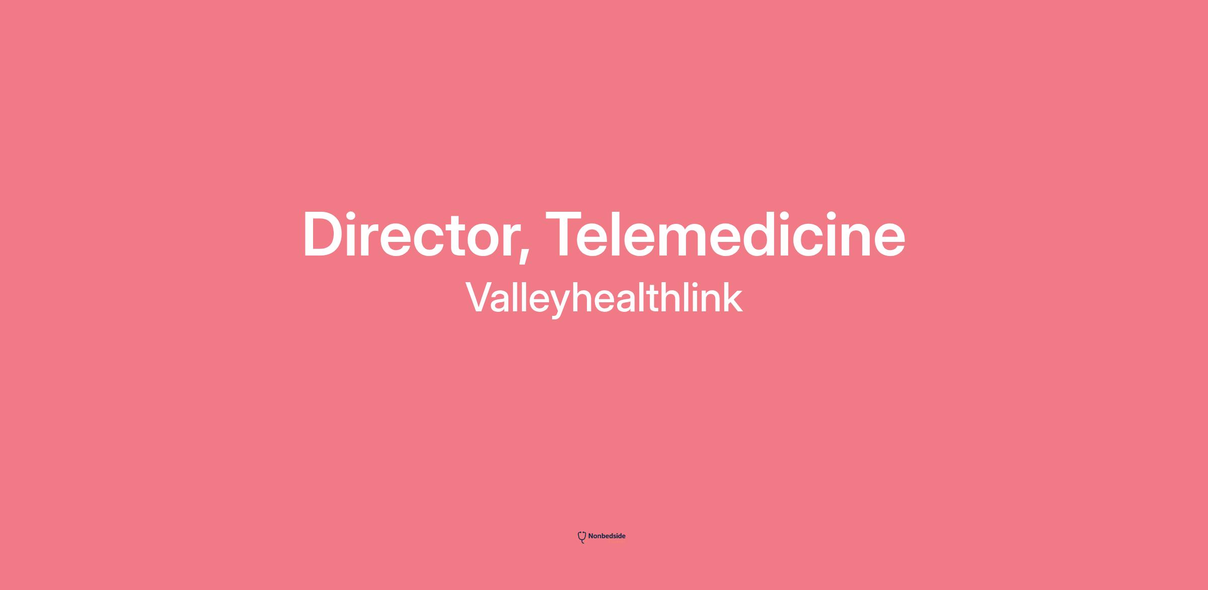 Director, Telemedicine page is loaded## Director, Telemedicinelocations: Winchester, VAtime type: Full timeposted on: Posted Todayjob requisition id: JR105540## DepartmentDIGITAL HEALTH - 108395## Worker Sub TypeRegular## Work ShiftFirst Shift (United States of America)**Pay Grade**316# **Job Description**The Director of Telemedicine is a visible and engaged leader, working in collaboration with operational leaders, Marketing, Business Development, Finance, and Information Technology to develop and oversee the implementation of a system-level roadmap for delivering local and regional Telehealth services that are user-friendly and market-leading. The Director is responsible for working closely with other health system leaders, physicians, and operational and technical teams to direct state-of-the-art Telehealth solutions and programs for patients in all stages of care. The Director will have a will have a deep understanding of clinical workflows in inpatient, outpatient, post-acute, and home-based environments, as well as technology trends and digital / Telehealth needs of patients, families, clinicians, healthcare organizations, and employers. The Director develops, accelerates and continually improves Telehealth services across the continuum of care while building buy-in and support from executive stakeholders and leading change management efforts to transform digital healthcare for patients and families. The Director serves to evangelize digital and Telehealth strategy to internal and external stakeholders, translating how Telehealth can improve clinical and cost outcomes and patient and clinician experience and builds mutually positive relationships with operational leaders, key physicians, payers, and community and state leaders to influence Telehealth legislation, reimbursement, and service expansion within the Valley Health service area and both nationally and internationally. **Education** Bachelor’s degree in Business, Healthcare Management or related field required Master's degree in Business, Healthcare Management or related field preferred **Experience** Five-seven years healthcare experience preferred **Qualifications** Excellent written and verbal communication skills requiredWell-developed interpersonal skills to work smoothly and productively with staff, physicians, and leaders requiredHighly developed organizational and reliability skills requiredAbility to work independently requiredExcellent knowledge of all aspects of the continuum of care requiredKnowledge and experience in budget development and management requiredKnowledge and experience in creating new, innovative programs requiredAbility to receive additional training, as needed, and remain current on the skills necessary for the performance ofrequired duties required **FLSA Classification** Exempt **Physical Demands** 3 A Administration# **Benefits**At Valley Health, we believe everyone is a caregiver, and our goal is to create an environment where our caregivers thrive physically, financially, and emotionally. In addition to a competitive salary, our most popular benefits for full-time employees include:* A Zero-Deductible Health Plan* Dental and vision insurance* Generous Paid Time Off* Tuition Assistance* Retirement Savings Match* A Robust Employee Assistance Program to help with many aspects of emotional wellbeing* Membership to Healthy U: An Incentive-Based Wellness ProgramValley Health also offers a health savings account & flexible spending account for childcare, life insurance, short-term and long-term disability, and professional development. In addition, several perks come with working for the largest employer in the region, such as discounts to on-campus dining, and more.To see the full scale of what we offer, visit .
