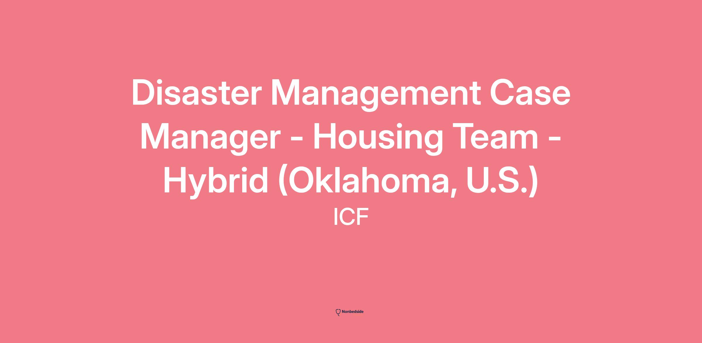 **ICF's Disaster Management team in Oklahoma** is looking for a **Case Manager** to join us immediately! **This full-time benefits-eligible position is located in Oklahoma in Carter County, McClain County, Murray County, and Osage County.**