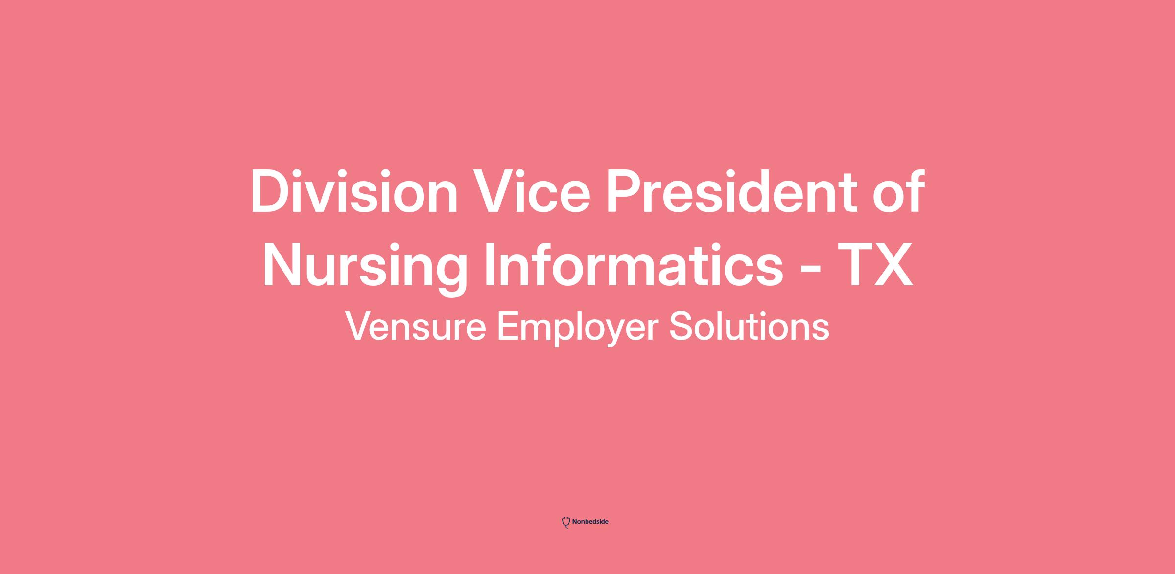 Division Vice President of Nursing Informatics - TX Join Vensure Employer Solutions as the Division Vice President of Nursing Informatics - TX .