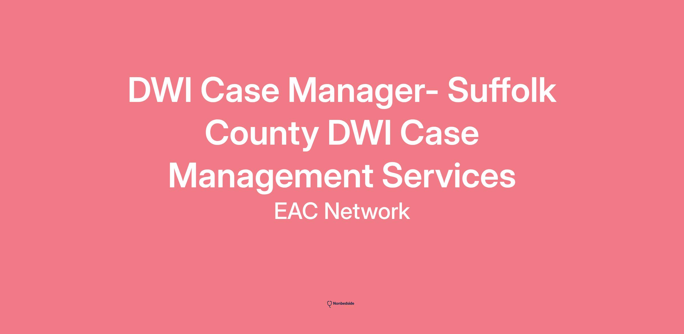 Are you passionate about supporting others, and making a real difference in their lives? EAC Network, a leading not-for-profit social service agency dedicated to helping over 79,000 people through 120 impactful programs across Long Island and NYC, is looking for a dedicated full time DWI Case Manager to join our Suffolk County DWI Case Management Services program.