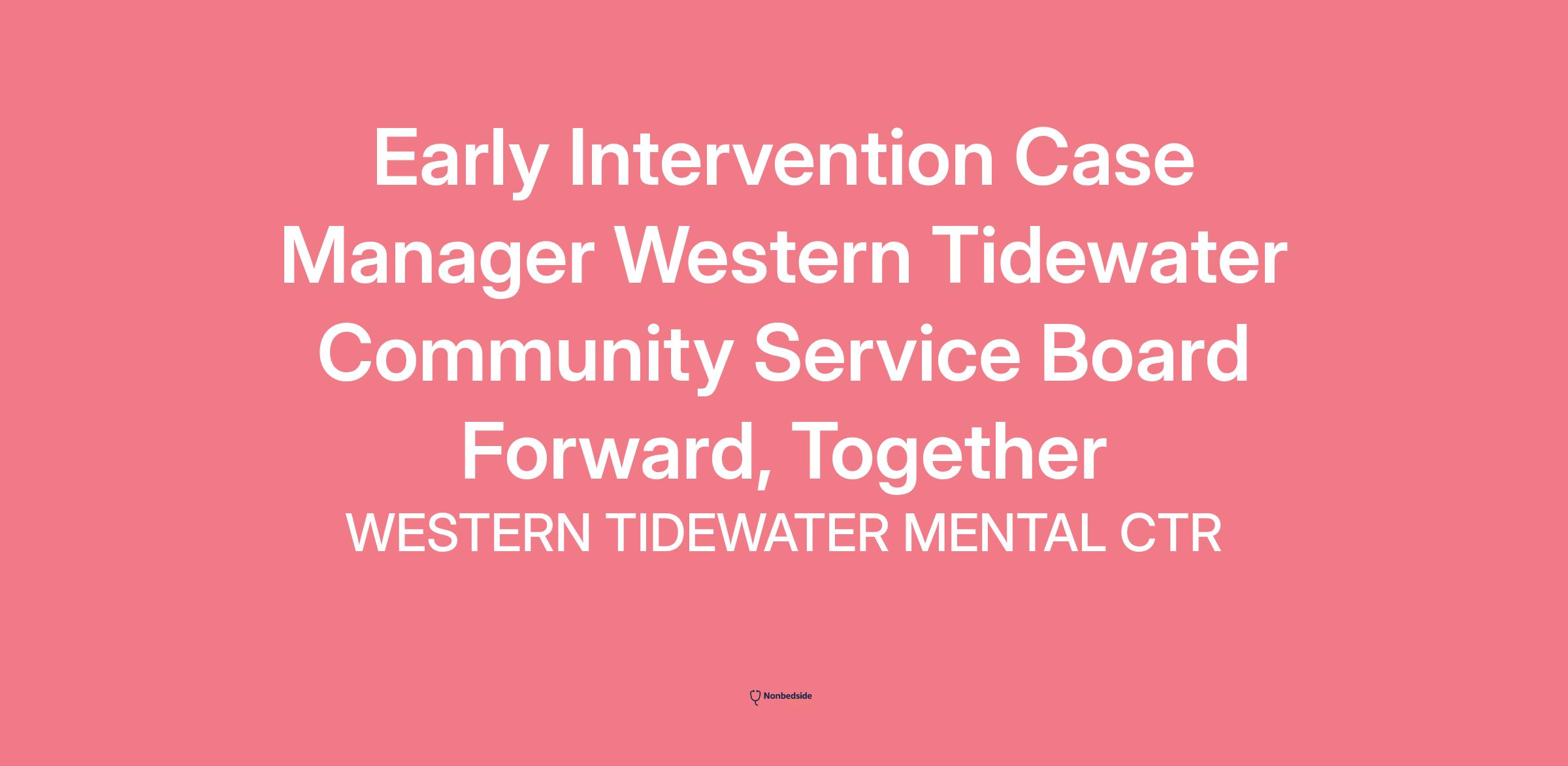 Western Tidewater CSB is seeking a Case Manager for our Early Intervention Program (age group, birth-3yrs) in Suffolk, VA. Responsibilities and Duties for Early Intervention Case Manager: Consumer assessment