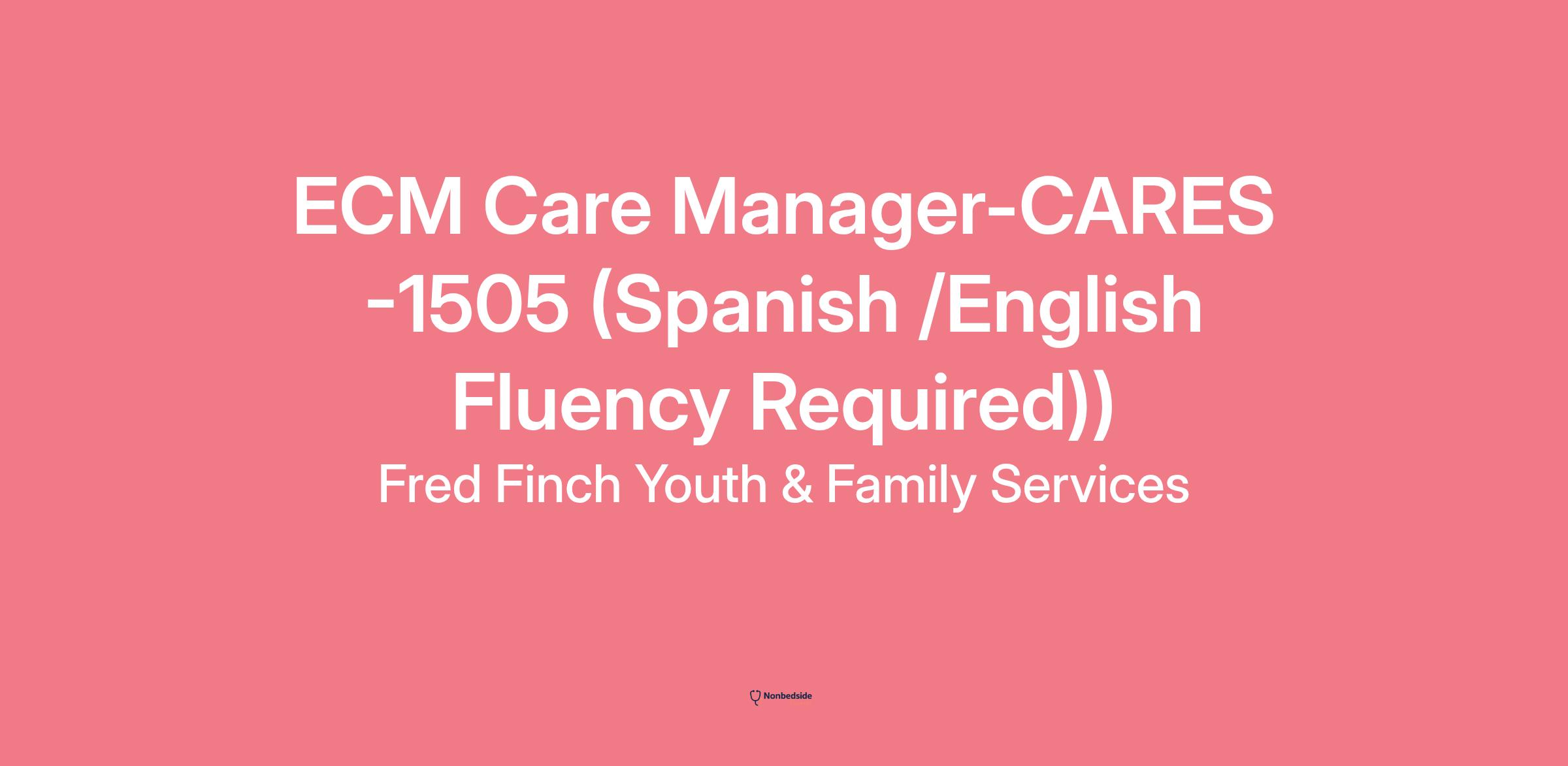 Join to apply for the ECM Care Manager-CARES -1505 (Spanish /English Fluency Required)) role at Fred Finch Youth & Family Services