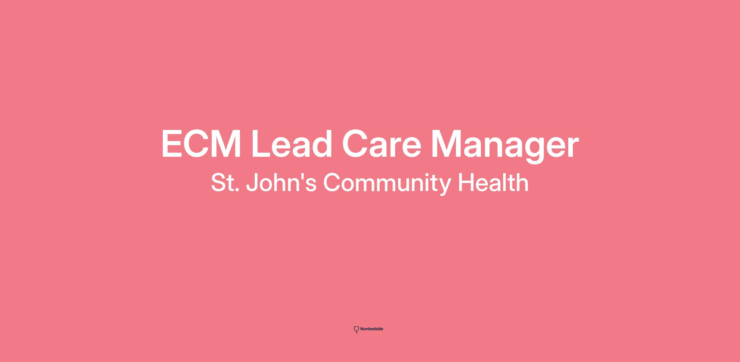 Overview Join to apply for the ECM Lead Care Manager role at St. John's Community Health .