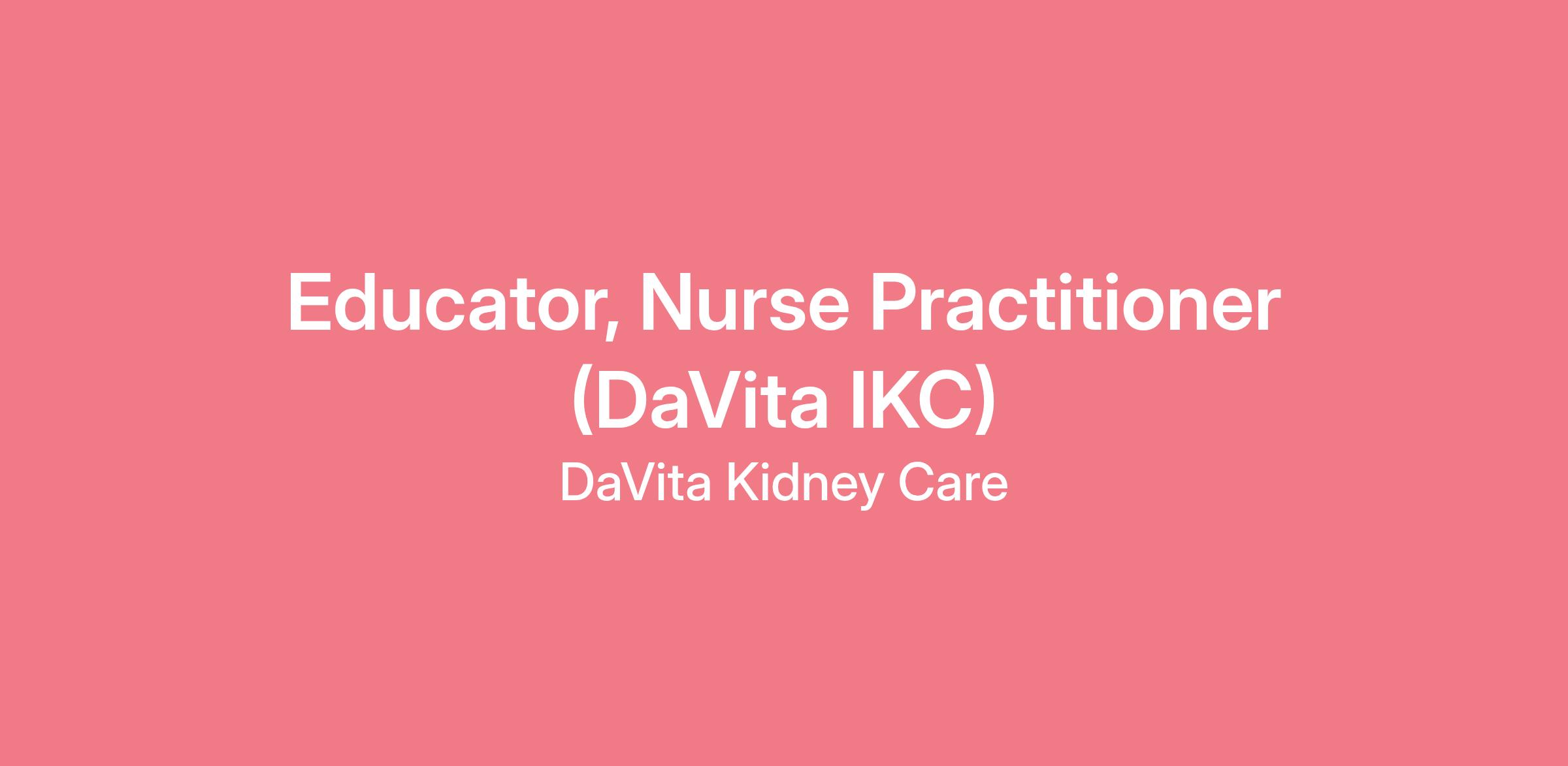 The Nurse Practitioner (NP) Educator is responsible for developing and delivering a clinical onboarding and ongoing training program for DaVita’s Integrated Kidney Care Nurse Practitioners and other care team members. The advanced knowledge and skills required for this role include clinical expertise in evidence-based practice, mentoring, and change leadership. The Nurse Practitioner (NP) Educator is accountable for collaborating with members of the clinical and operations teams to design and implement this comprehensive clinical education curriculum, including classroom learning, virtual and blended teaching styles, on-the-job shadowing and coaching, and measuring competencies. The Nurse Practitioner (NP) Educator is responsible for maintaining current professional knowledge and competencies and contributing to the advancement of DaVita’s IKC programs.