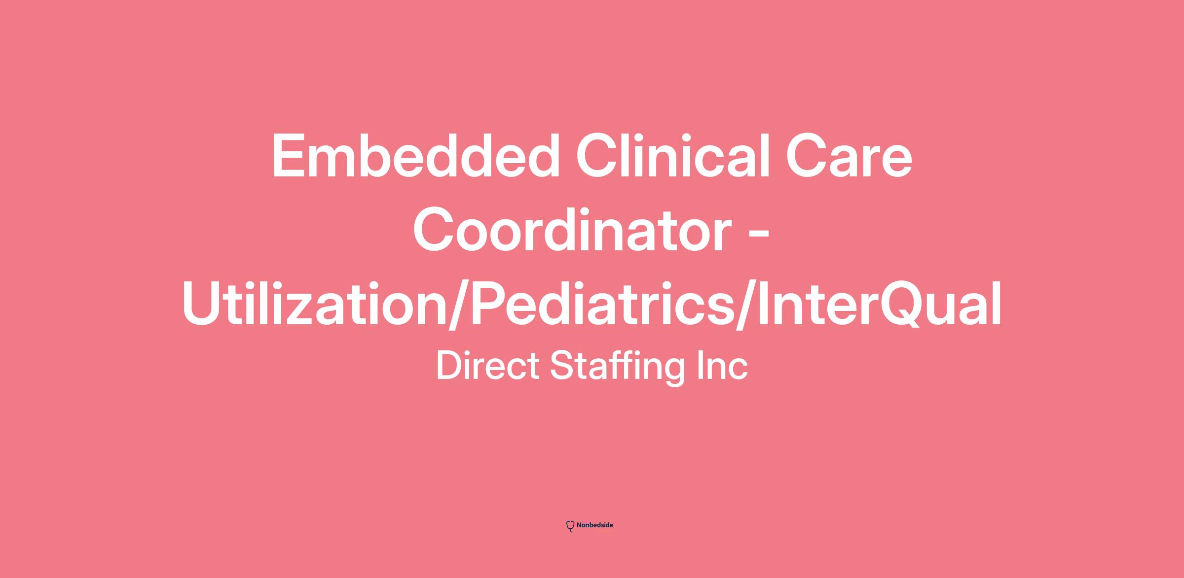 Embedded Clinical Care Coordinator - Utilization//Pediatrics/InterQual Position type: Full-time