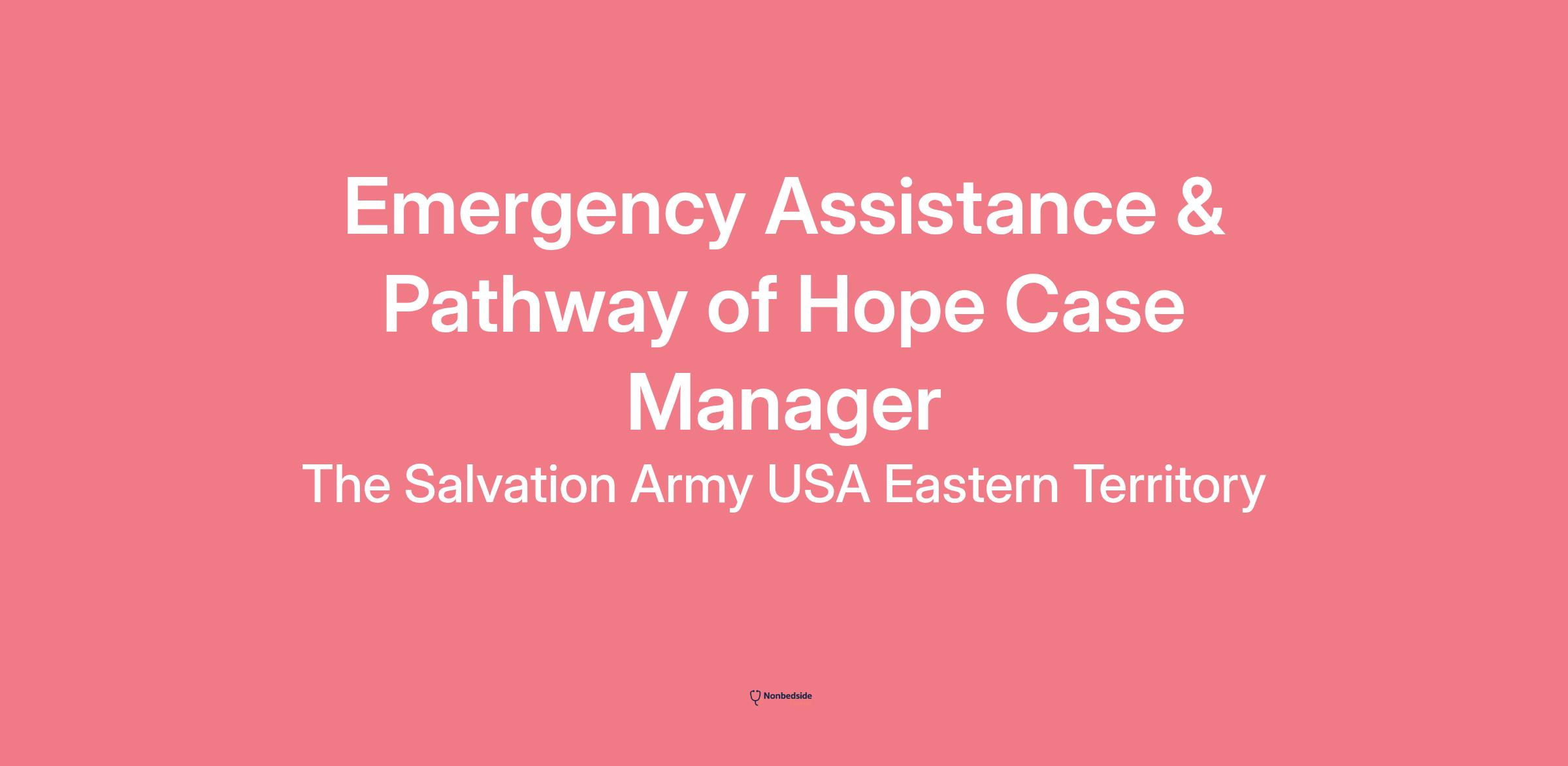 Emergency Assistance & Pathway of Hope Case Manager Join to apply for the Emergency Assistance & Pathway of Hope Case Manager role at The Salvation Army USA Eastern Territory