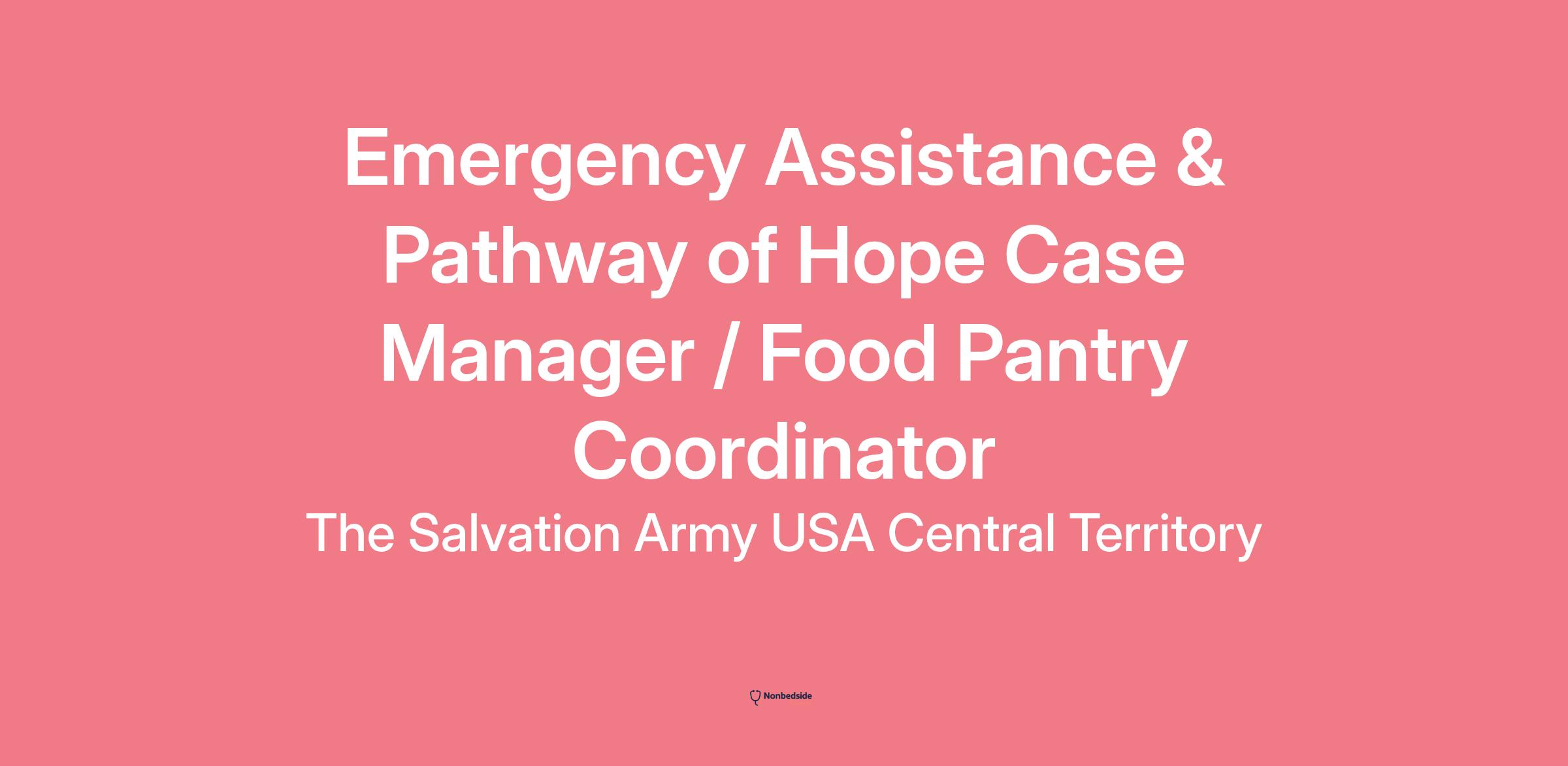 Coordinate social services activities for the corps. Duties involve interviewing clients to identify problems, determining assistance needed, giving direct assistance or referring them to the appropriate agency. Provide direct assistance and/or referral to clients in need based on established criteria; assess all families with minor children for eligibility in the Pathway of Hope (POH) program. Deliver all POH services using the strength-based case management model to families with a desire to take action to break the cycle of crisis and change the trajectory of their lives. Responsible for pantry including, but not limited to, the transferring of food from donation locations to The Salvation Army's food pantry. Responsibilities require considerable contact with the general public and other agencies.