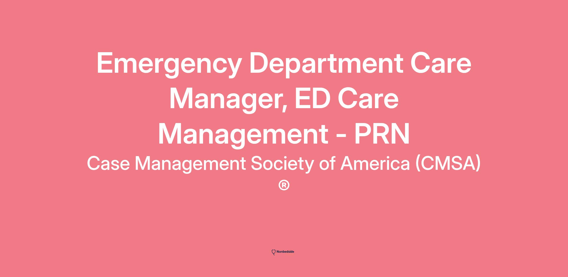 Summary: The Emergency Department (ED) Care Manager is responsible for establishing, coordinating, and maintaining the process to increase patient throughput to the most appropriate level of care while facilitating interdisciplinary care across the continuum for the ED. The Care Manager collaborates with the patient and/or family, multidisciplinary team, physicians, community partners, and payers to ensure the patient’s progress and level of care are appropriately determined. The Care Manager has well-developed knowledge and skill in patient status in the inpatient and outpatient settings and collaborates with other care managers, social workers, Patient Access, physicians, and administrative leadership in the ED to determine the appropriate level of care. The Care Manager also has a robust understanding of services and resources outside of the hospital that would be of benefit to the patient and initiates referrals as indicated. This work includes patient assessment and management, resource management, identifying patients appropriate for admission, observation or outpatient status, care facilitation, discharge planning with referrals to all levels of care, and other duties related to the defined population.
