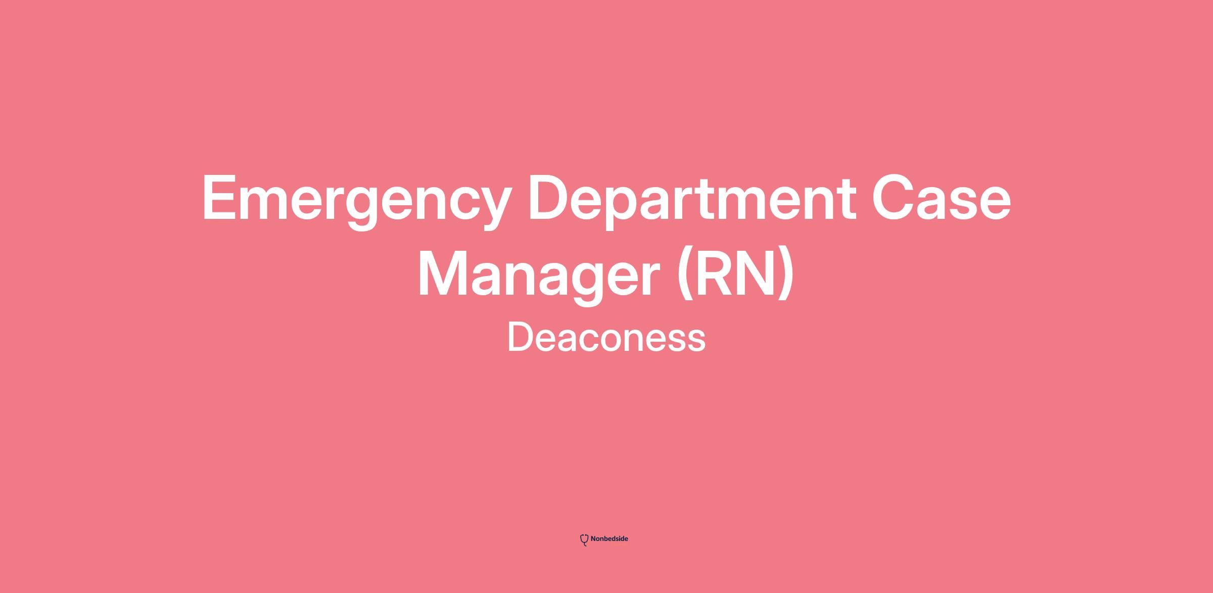 Other Key Words: Case Management // Care Coordinator // Emergency Medicine // Emergency Room // ER // Emergency Department // ED // ED RN Case Manager