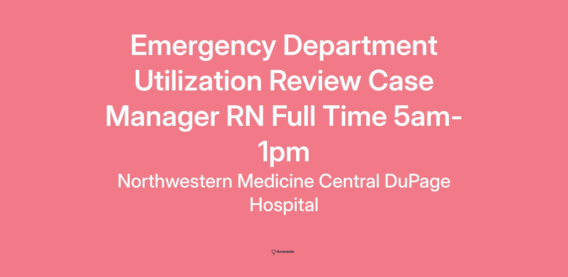 Join to apply for the Emergency Department Utilization Review Case Manager RN Full Time 5am-1pm role at Northwestern Medicine Central DuPage Hospital.