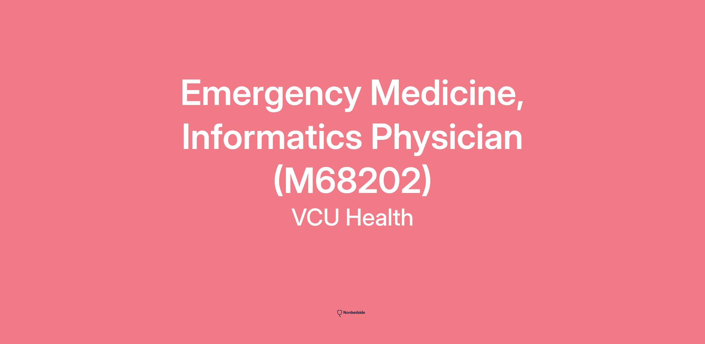 Chief Purpose of this position: We are seeking an enthusiastic and dedicated individual to join our dynamic academic emergency medicine team as a Physician Informaticist. We are seeking a full-time candidate who will work 75% of their time clinically and 25% dedicated to clinical informaticist duties. The clinical time will be split between our downtown adult ED and our free-standing ED at New Kent. The candidate will contribute to our mission of providing exceptional patient care, innovative research, and high-quality education in emergency medicine. Our Emergency Medicine Physician Informaticist would bridge clinical practice and technology by analyzing patient data, optimizing workflows, and implementing IT systems to improve patient care, safety, and efficiency in the Emergency Department. This role requires a strong understanding of both clinical operations and information systems to ensure technology effectively supports evidence-based decision-making and enhances the overall patient experience.