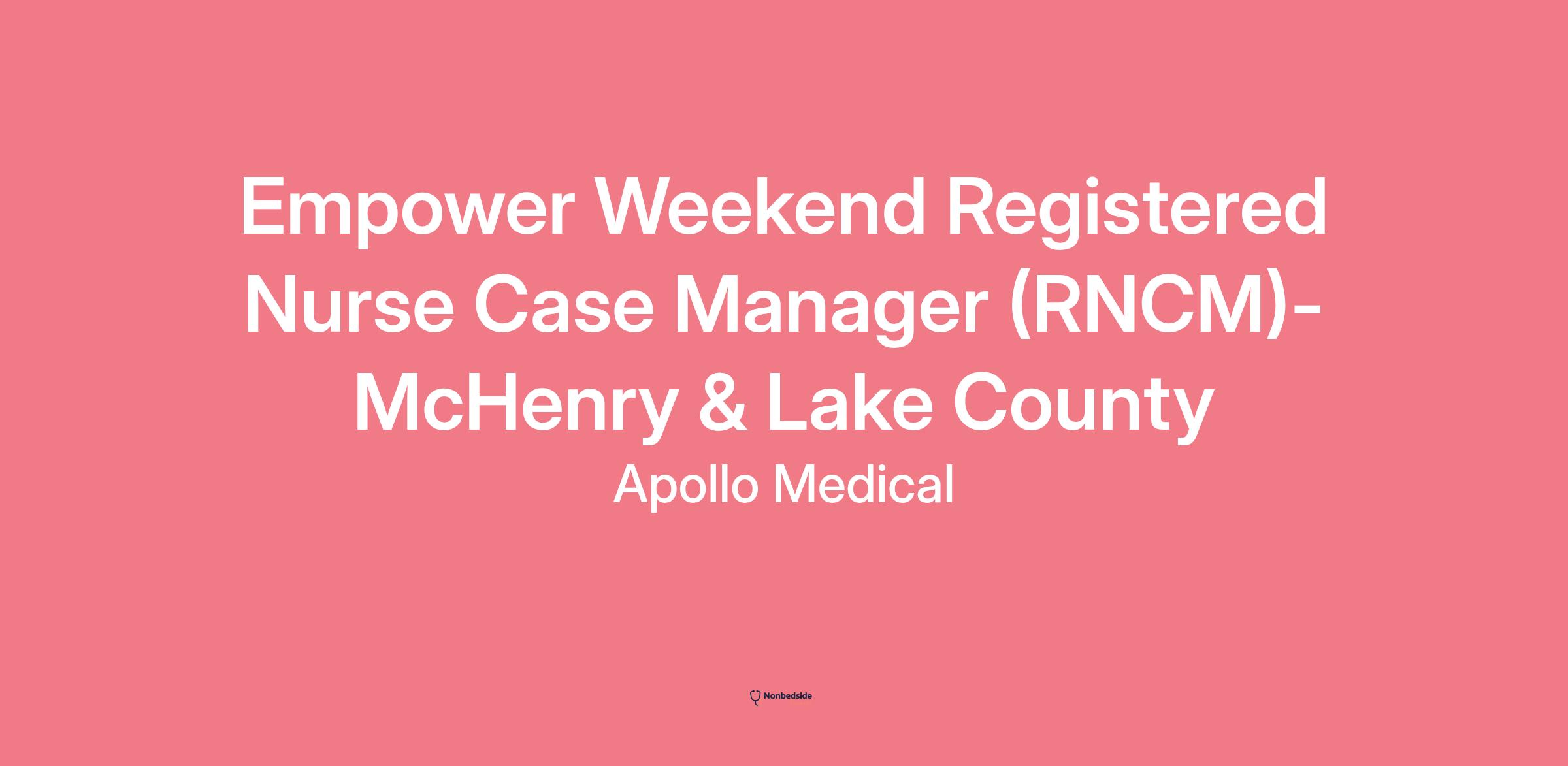 Empower Weekend Registered Nurse Case Manager (RNCM)-McHenry & Lake County JOIN A GROWING TEAM & HELP US REACH MORE PATIENTS IN OUR COMMUNITIES!