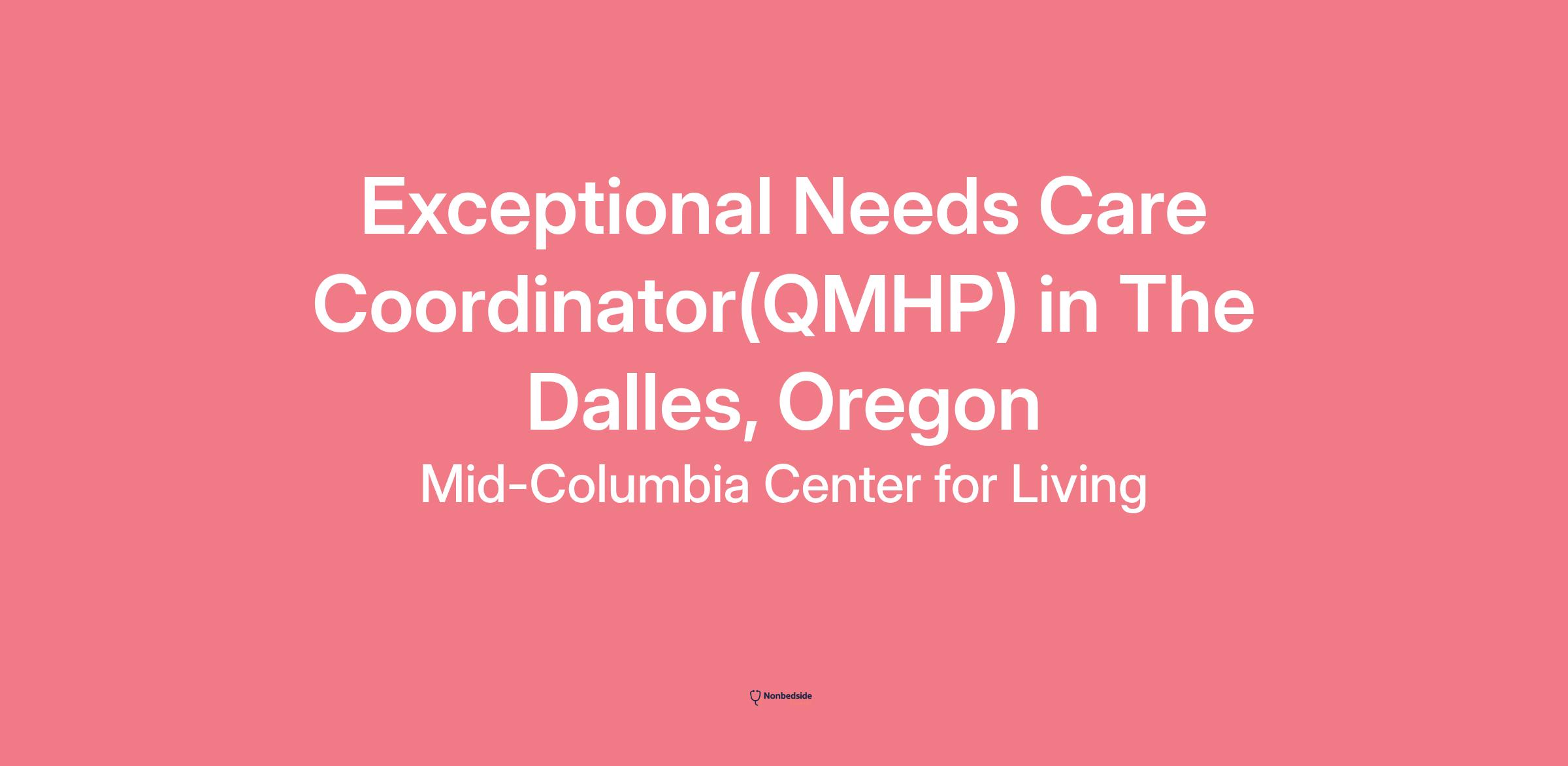 Exceptional Needs Care Coordinator(QMHP) in The Dalles, Oregon Join to apply for the Exceptional Needs Care Coordinator(QMHP) in The Dalles, Oregon role at Mid-Columbia Center for Living