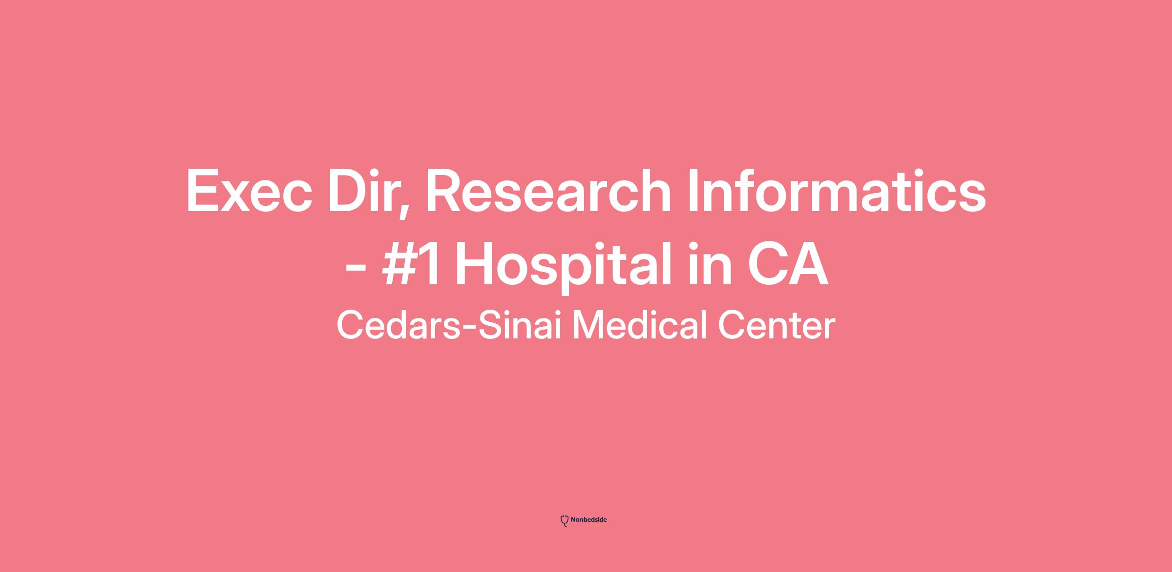 Working Title : Exec Dir, Research Informatics - #1 Hospital in CA