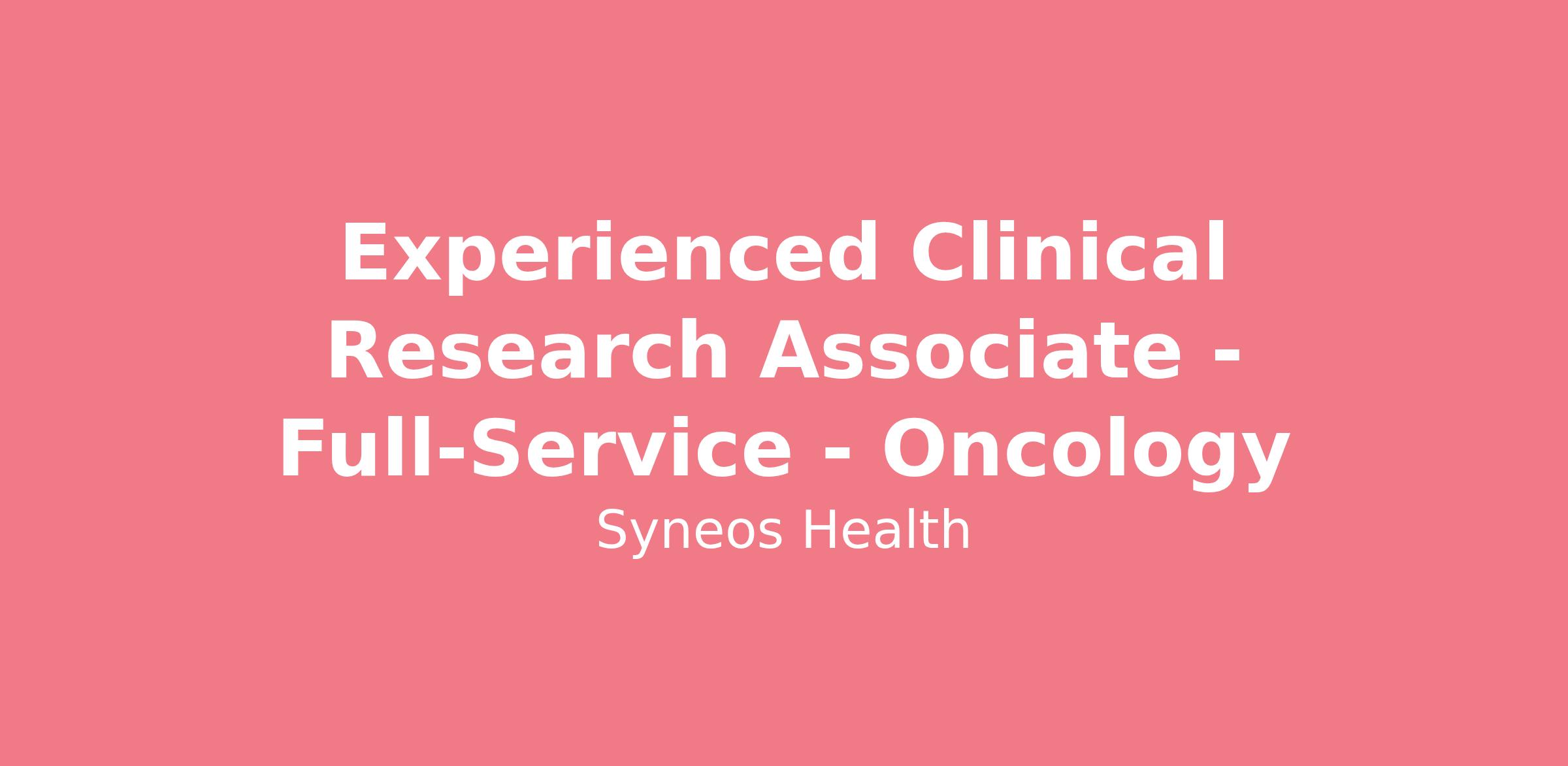 Experienced Clinical Research Associate - Full-Service - Oncology