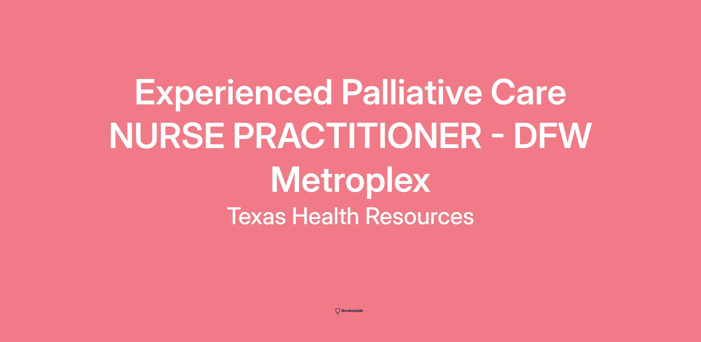 Texas Health Physicians Group has an opening for a Full-Time Palliative Care Nurse Practitioner . This is an exciting new opportunity to join a passionate team to provide comprehensive palliative care services to any patient and family dealing with a serious illness. If you have a natural ability to connect and empathize with patients and their families, this is the job for you.