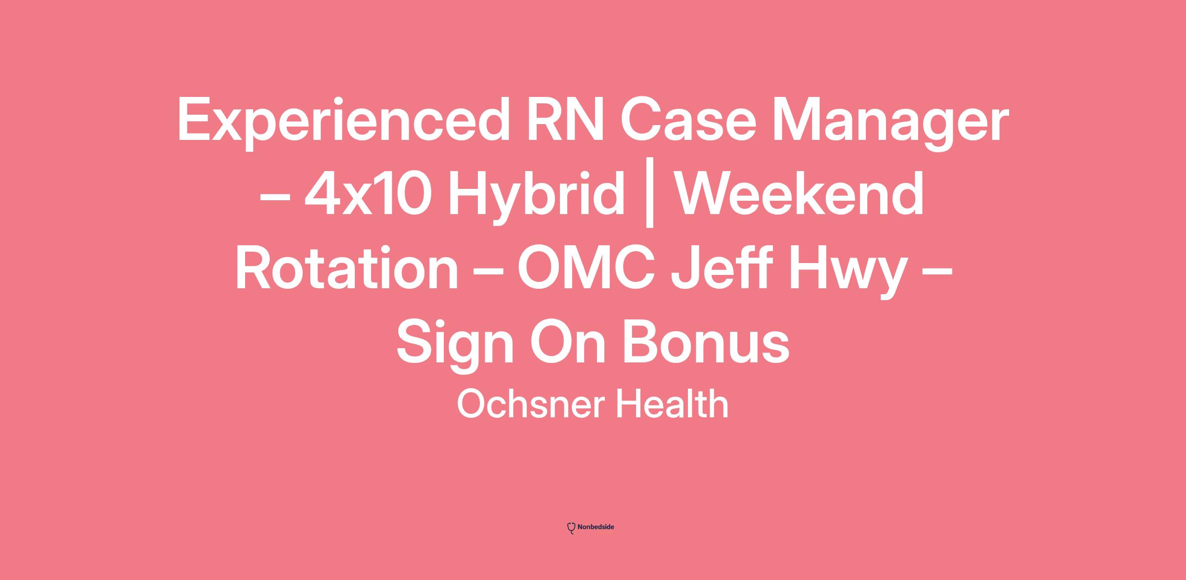 Experienced RN Case Manager – 4x10 Hybrid | Weekend Rotation – OMC Jeff Hwy – Sign On Bonus