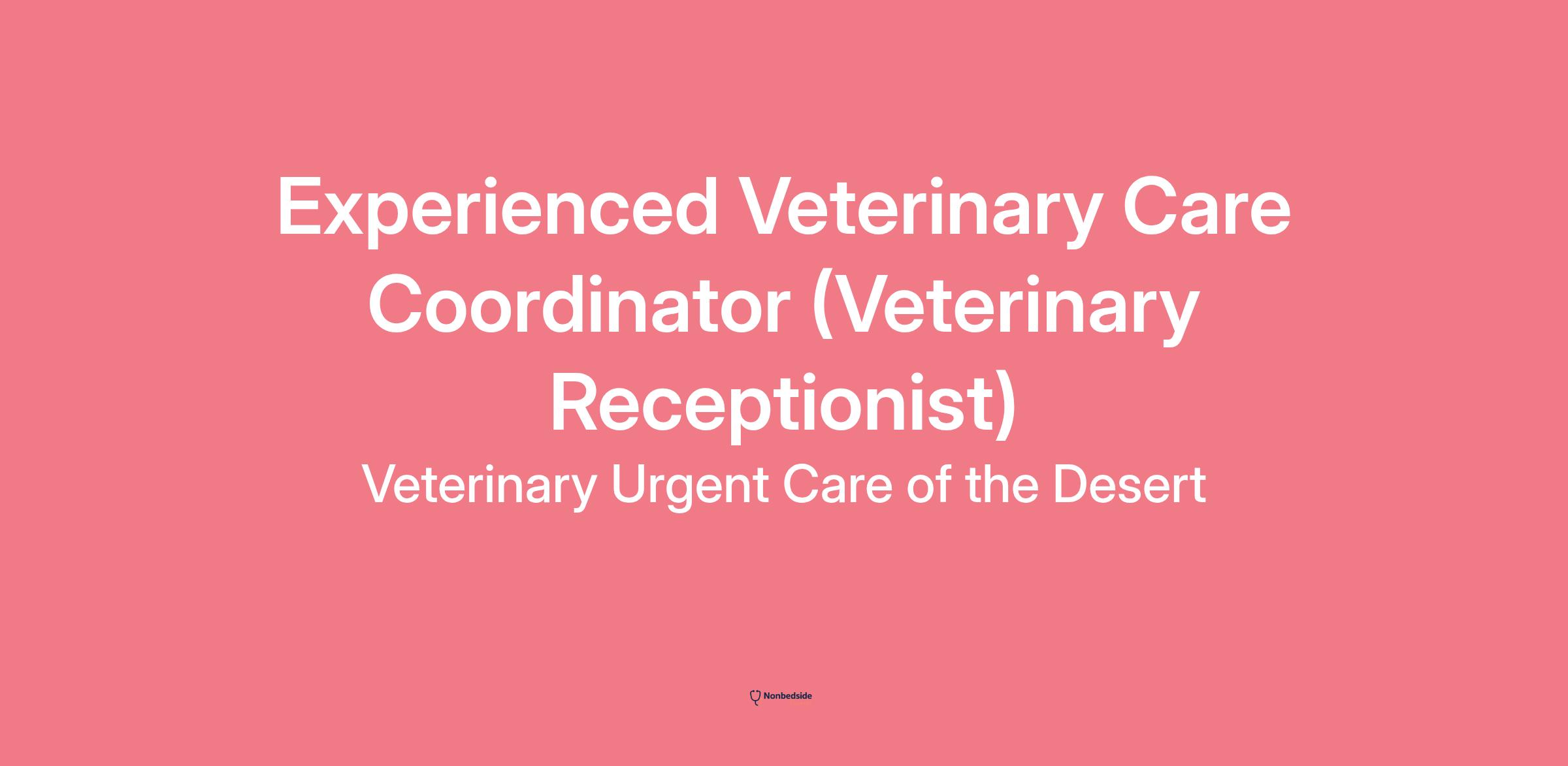 We are looking for passionate, talentedExperienced Veterinary Care Coordinatorsto join our team. The Care Coordinator role is a unique position that offers immense growth potential. This position is essential to the success of the practice. The Care Coordinator performs a wide range of duties, but primarily focuses on assisting clients and ensuring consistent, compassionate and timely communication throughout each patient visit. The main goal of the Care Coordinator is to ensure clients and patients feel comforted and at-ease. This position offers the opportunity to learn and build on existing veterinary administrative skills in a supportive and caring environment.