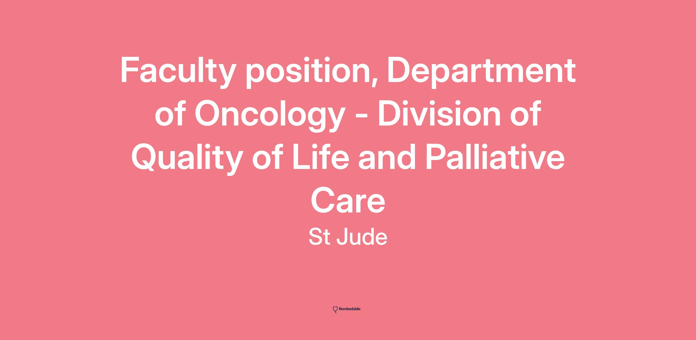 This position will report directly to the Division Director of Quality of Life and Palliative Care. The faculty member will provide patient care services under the leadership of the Division Director, Director of Oncology Clinical Medicine, and the Department of Oncology Chair. The Department of Oncology provides a highly collaborative and interactive environment where faculty members have ample opportunities to participate in clinical, educational, and translational research initiatives.