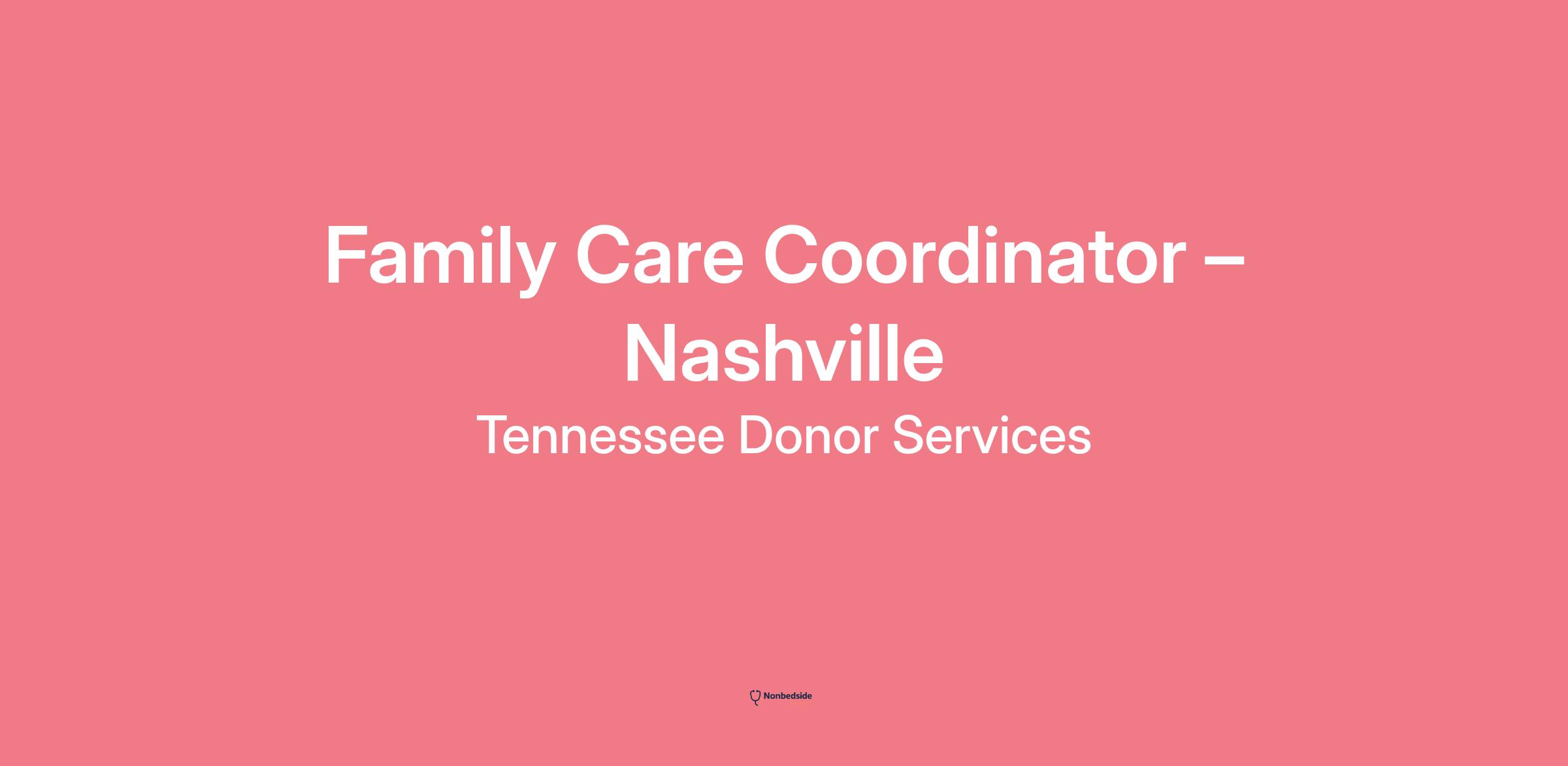 Tennessee Donor Services (TDS) is looking for a dynamic and enthusiastic team member to join us to save lives! Our mission at TDS is to save lives through organ donation and we want professionals on our team that will embrace this important work!! Specifically, people with expertise in communicating in difficult situations and building relationships with patients and their families similar to counseling or patient relations. This position, Family Care Coordinator, will work with organ donor families, hospital personnel, physicians, and other team members from TDS to work through the donation process for saving lives through organ and tissue donation. Primary work environment is in the hospital setting in the Nashville area of Tennessee and throughout Tennessee hospitals. Strong interpersonal skills and the ability to communicate effectively in both oral and written formats are a must.