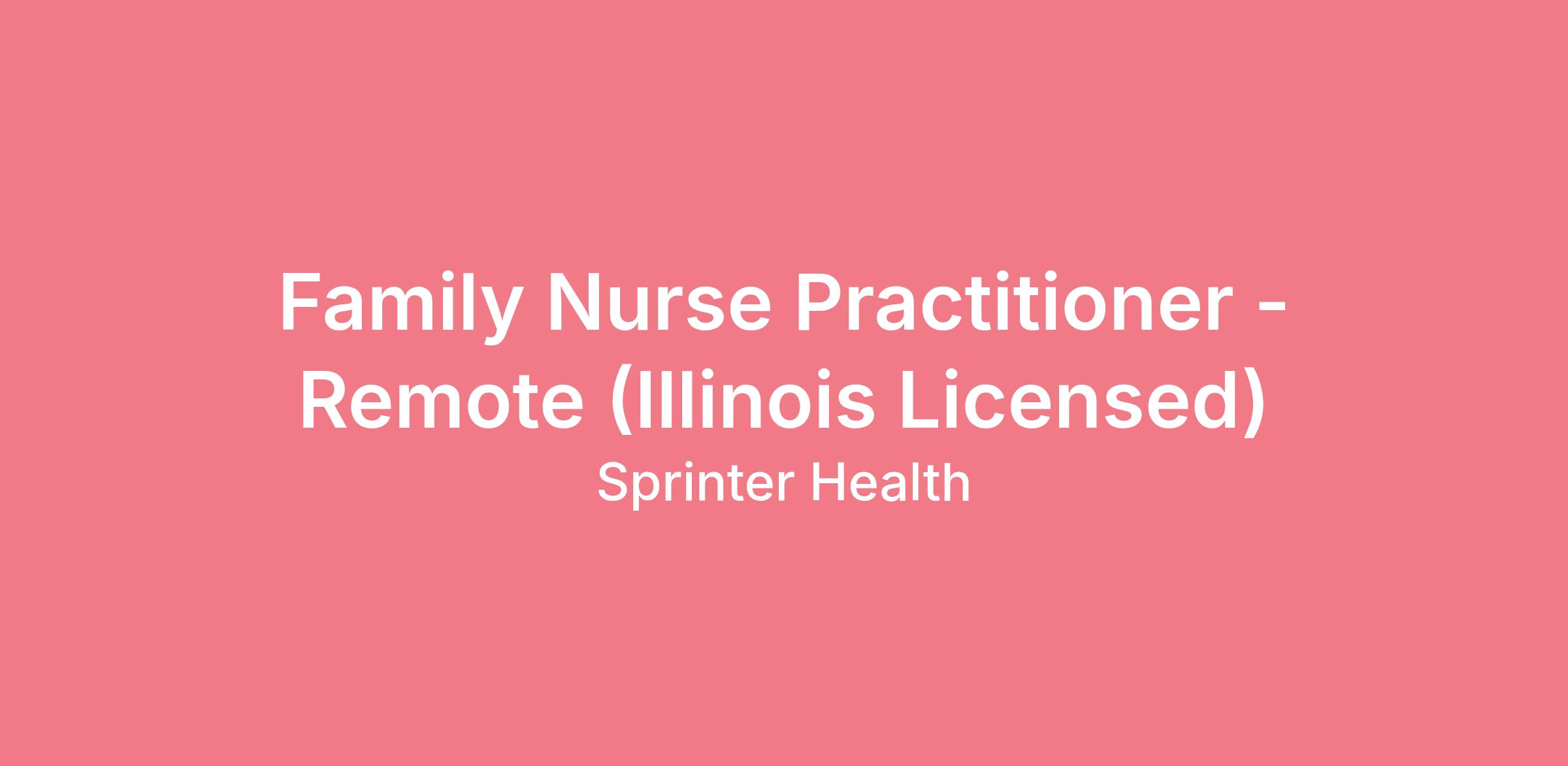Are you ready to join the pioneering healthcare team at Sprinter Health? We're looking for dynamic Nurse Practitioners who are ready to revolutionize healthcare delivery by conducting virtual wellness visits directly to patients in the comfort of their homes. As a Nurse Practitioner with Sprinter Health, you'll leverage your medical expertise to offer a wide range of healthcare services that could include but not limited to virtual adult and/or pediatric wellness visits, health assessments, and more!