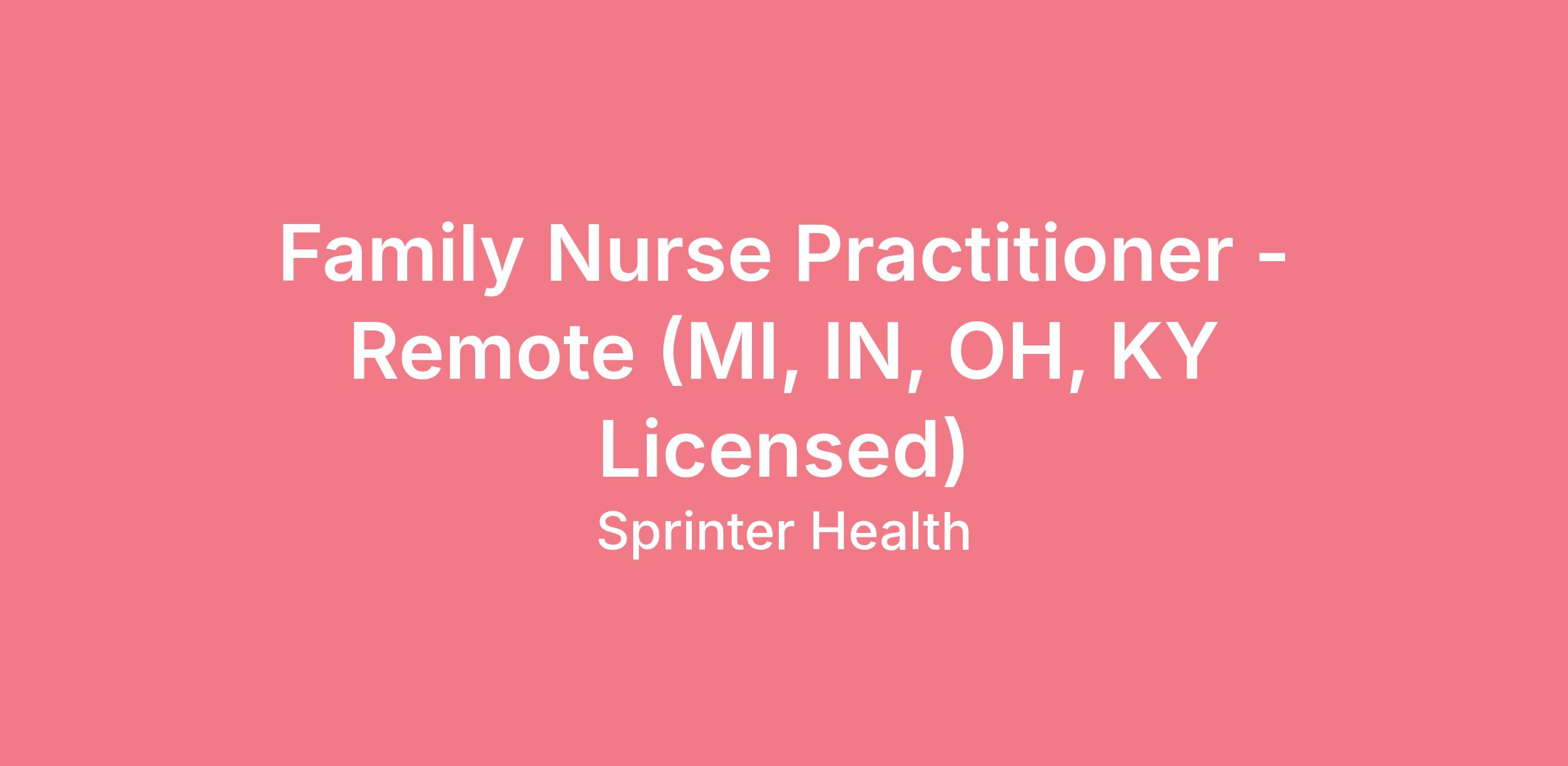 Are you ready to join the pioneering healthcare team at Sprinter Health? We're looking for dynamic Nurse Practitioners who are ready to revolutionize healthcare delivery by conducting virtual wellness visits directly to patients in the comfort of their homes. As a Nurse Practitioner with Sprinter Health, you'll leverage your medical expertise to offer a wide range of healthcare services that could include but not limited to virtual adult and/or pediatric wellness visits, health assessments, and more!