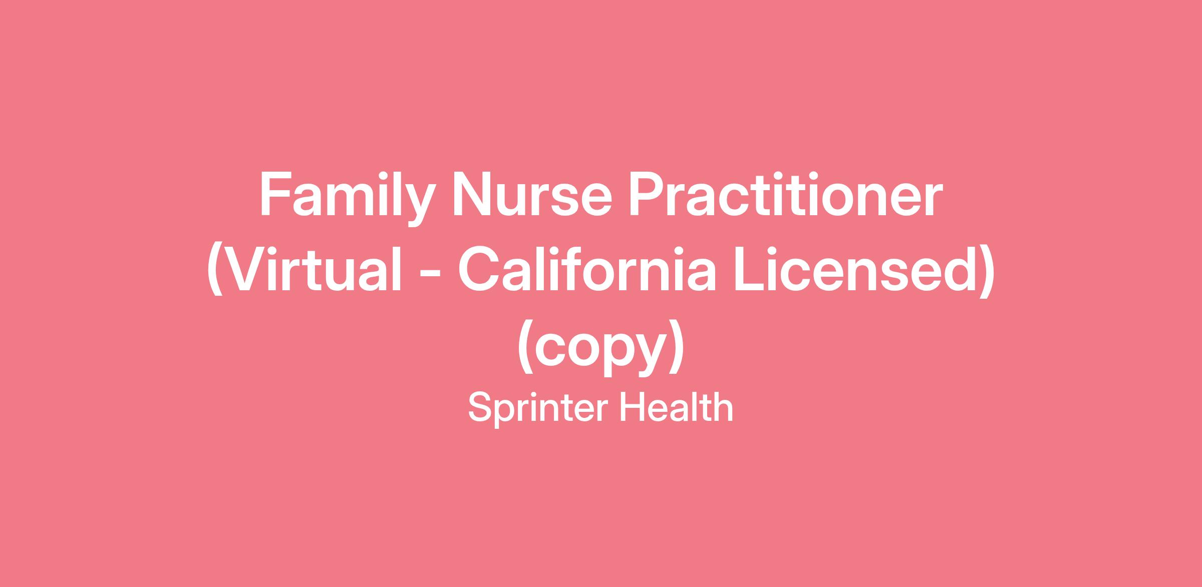 Are you ready to join the pioneering healthcare team at Sprinter Health? We're looking for dynamic Nurse Practitioners who are ready to revolutionize healthcare delivery by conducting virtual wellness visits directly to patients in the comfort of their homes. As a Nurse Practitioner with Sprinter Health, you'll leverage your medical expertise to offer a wide range of healthcare services that could include but not limited to virtual adult and/or pediatric wellness visits, health assessments, and more!