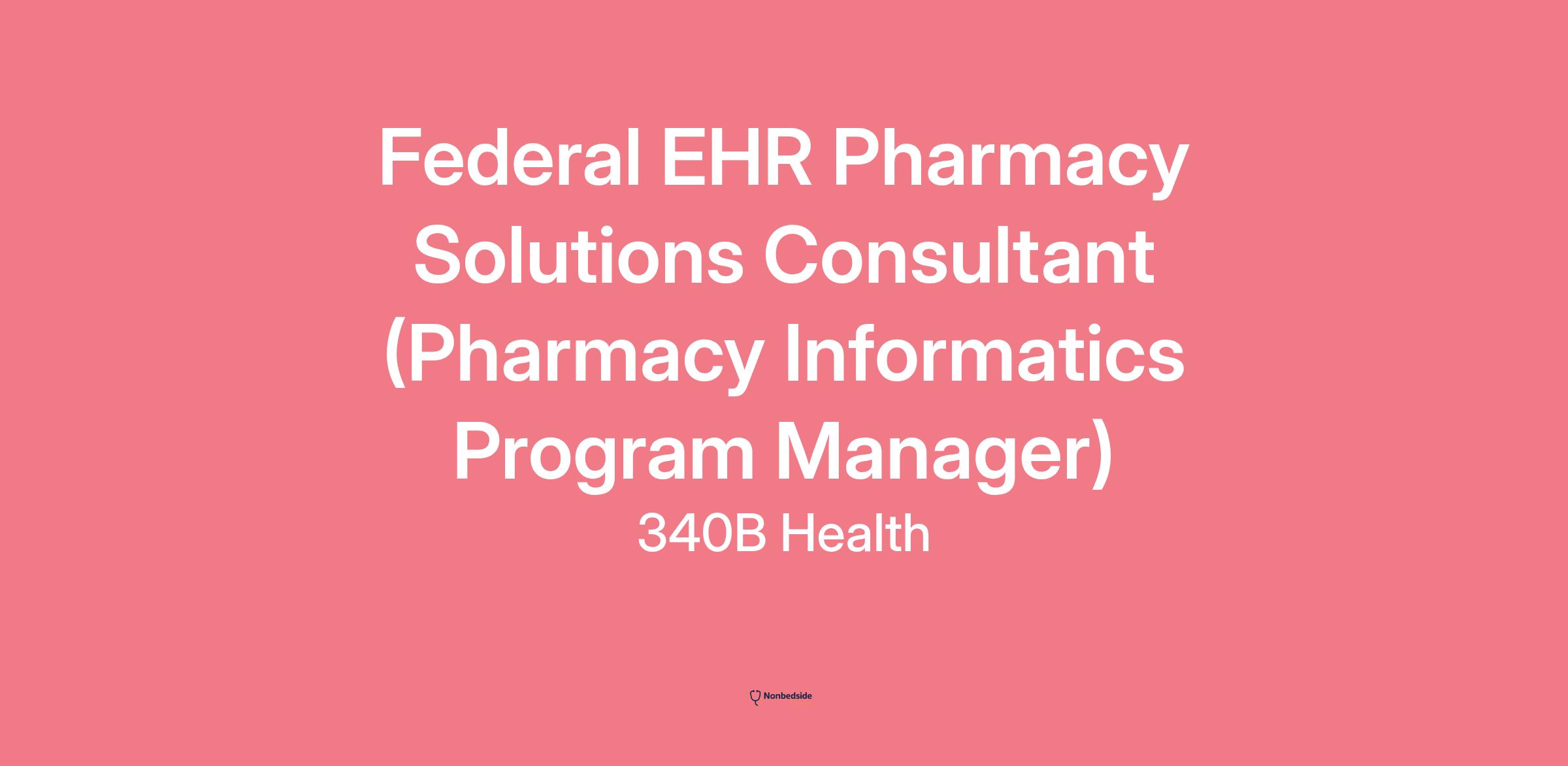 Overview The Federal EHR Program Solutions Consultant works independently under the EHR Associate Chief of Pharmacy. The incumbent will aid in program management related to EHR implementation, planning, and training. This position will support the pharmacy teams at Indianapolis and Northern Indiana VA Health-Care Systems and will be physically based in Indianapolis. The 2-page Resume requirement does not apply to this occupational series. For more information, refer to Required Documents below.