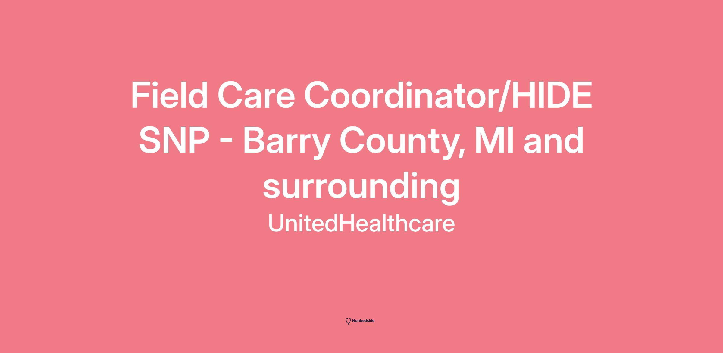 Field Care Coordinator/HIDE SNP - Barry County, MI and surrounding At UnitedHealthcare, we're simplifying the health care experience, creating healthier communities and removing barriers to quality care. The work you do here impacts the lives of millions of people for the better. Come build the health care system of tomorrow, making it more responsive, affordable, and equitable.
